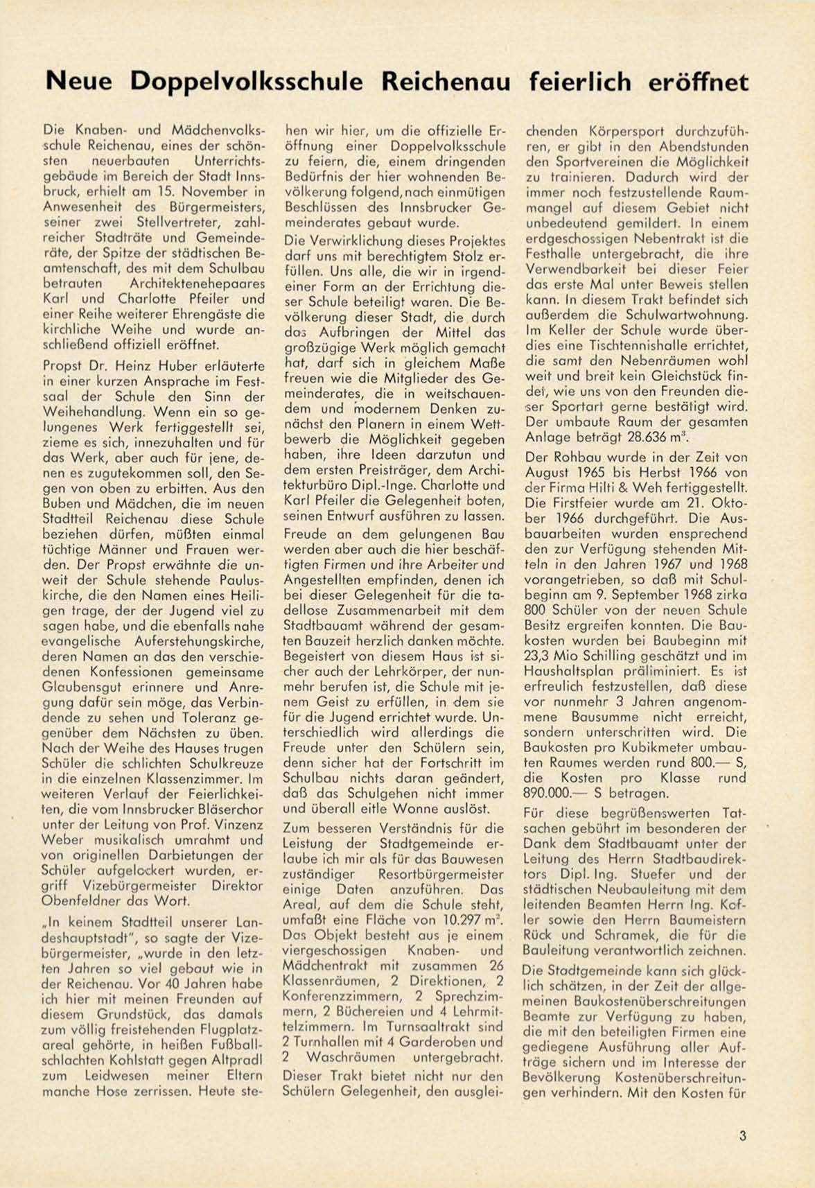 Unterrichtsg e b ä u d e im Bereich der Stadt Innsbruck, erhielt a m 15. N o v e m b e r in