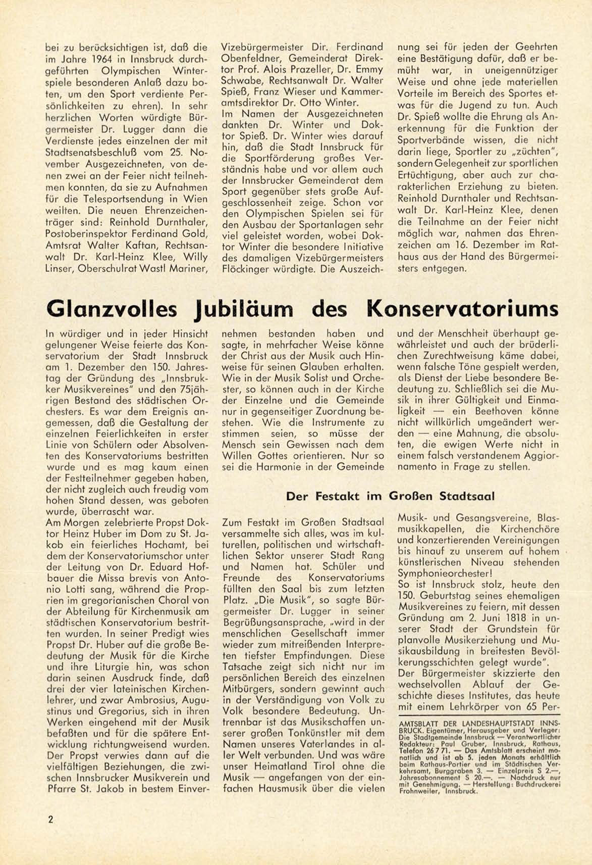 a m 1. D e z e m b e r den 150. J a h r e s t a g der G r ü n d u n g des „Innsbrukker M u s i k v e r e i n e s " und den 75jährigen Bestand des städtischen O r chesters. Es w a r dem Ereignis a n g e m e s s e n , daß die G e s t a l t u n g der