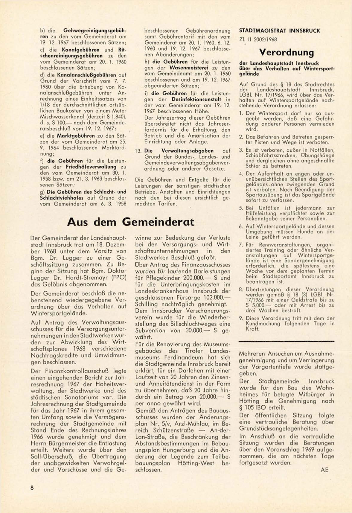 Der G e m e i n d e r a t der Landeshauptstadt Innsbruck trat am 18. D e z e m ber 1968 unter d e m Vorsitz v o n