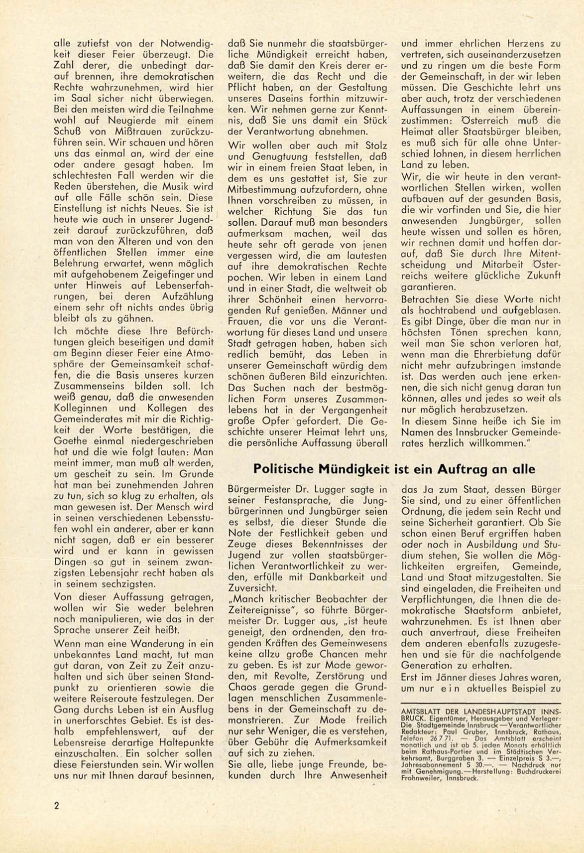 AMTSBLATT DER L A N D E S H A U P T S T A D T I N N S B R U C K . Eigentümer, Herausgeber und VerlegerDie Stadtgemeinde Innsbruck—Verantwortlicher