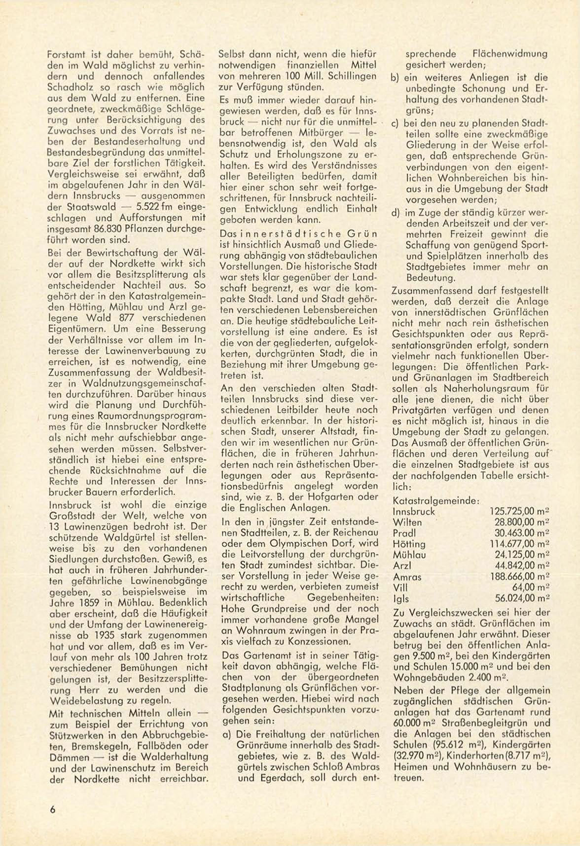 Es muß immer w i e d e r d a r a u f hingewiesen w e r d e n , d a ß es für Innsbruck — nicht nur f ü r die unmittelb a r betroffenen M i t b ü r g e r — leb e n s n o t w e n d i g ist, d e n W a l d als