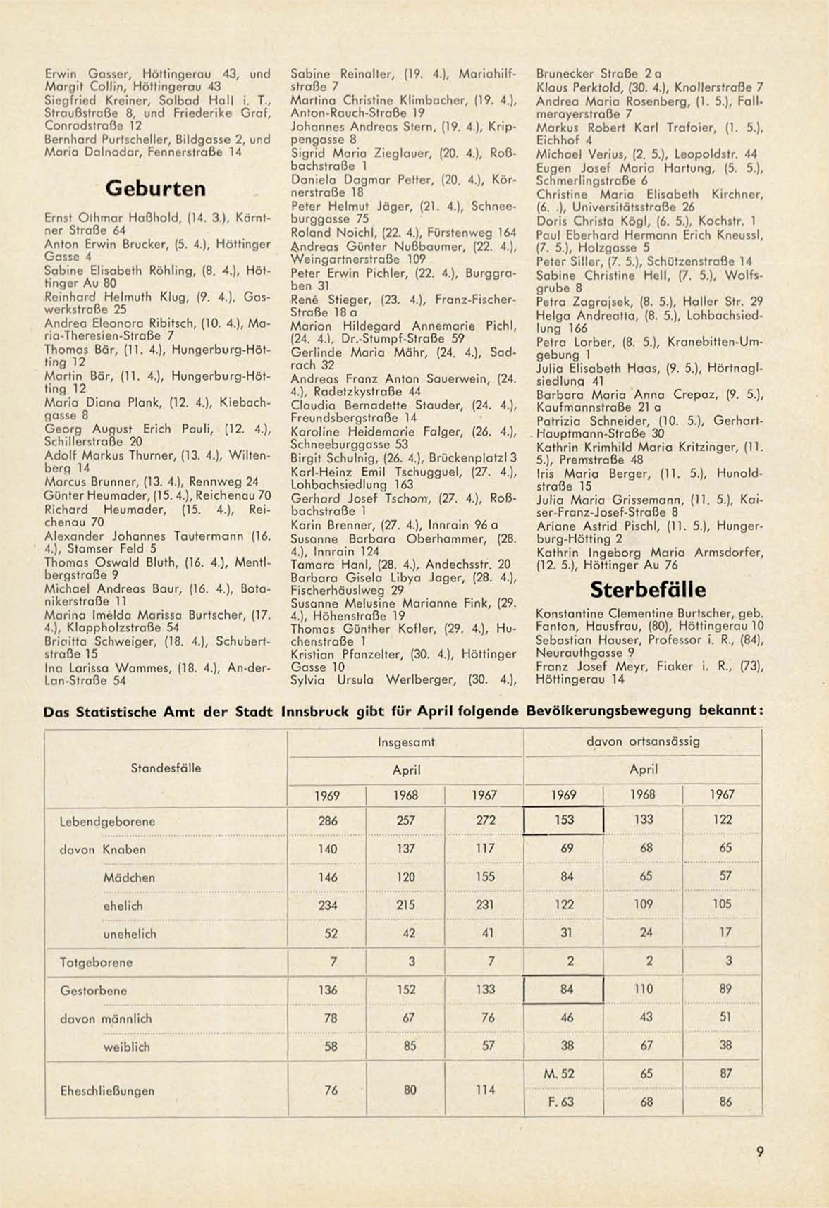 der Stadt Innsbruck gibt für April folgende Bevölkerungsbewegung