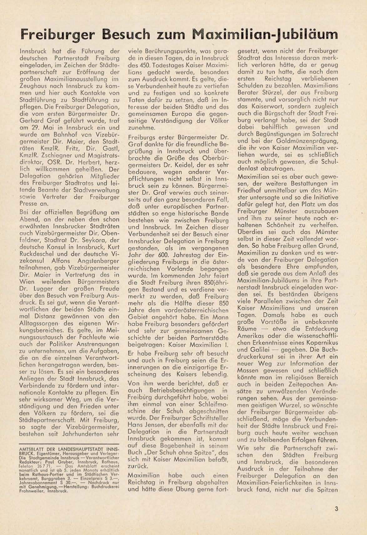 M a x i m i l i a n - J u b i l ä u m s in ihre Partnerstadt Innsbruck e i n g e l a d e n w o r den s e i . Es beständen