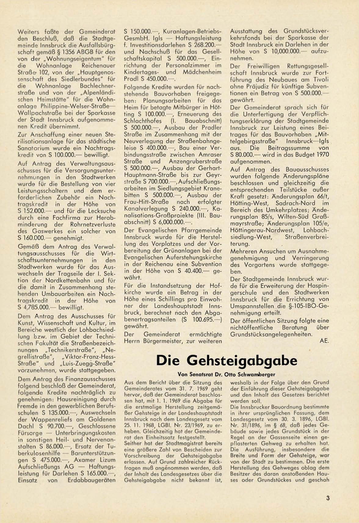 Hauptmann-Straße bis zur G e y r straße S 700.000. , Aufschließungsarbeiten im S i e d l u n g s g e b i e t K r a n e bitten S 500.000. - , A u s b a u der