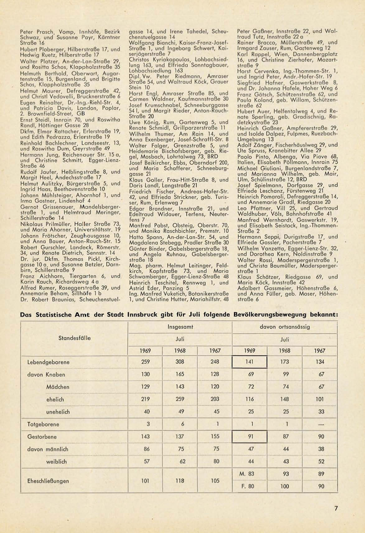 der Stadt Innsbruck gibt für Juli folgende Bevölkerungsbewegung