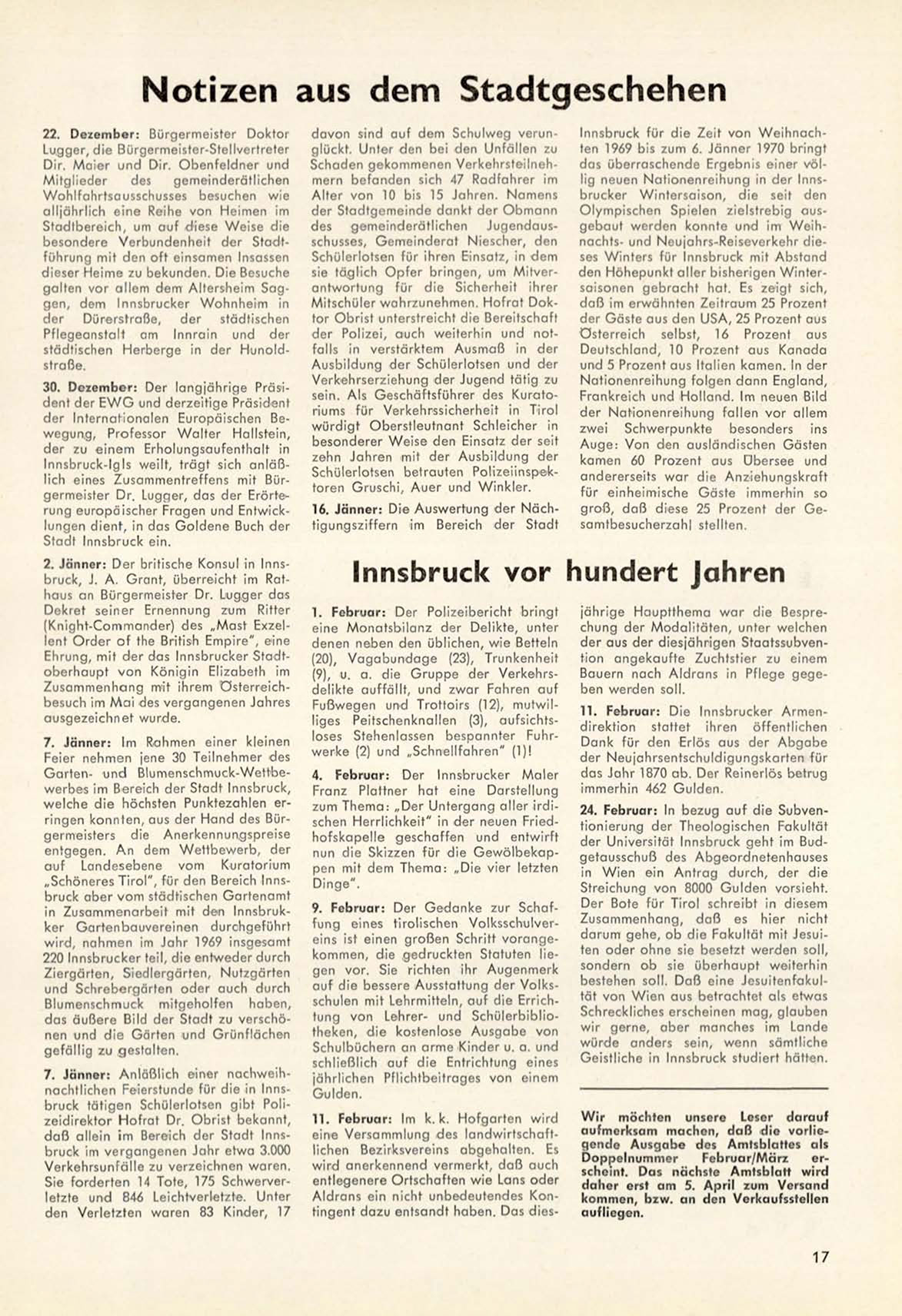 Innsbruck für d i e Z e i t v o n W e i h n a c h ten 1969 bis z u m 6. J ä n n e r 1970 bringt