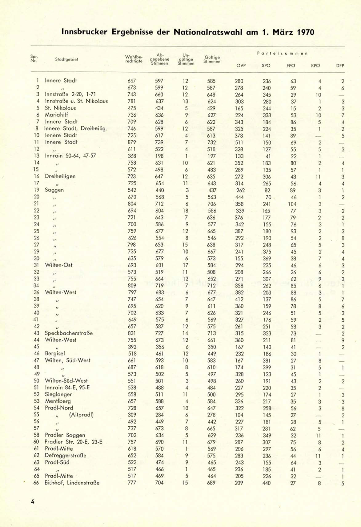 Innsbrucker Ergebnisse der Nationalratswahl am 1. M ä r z