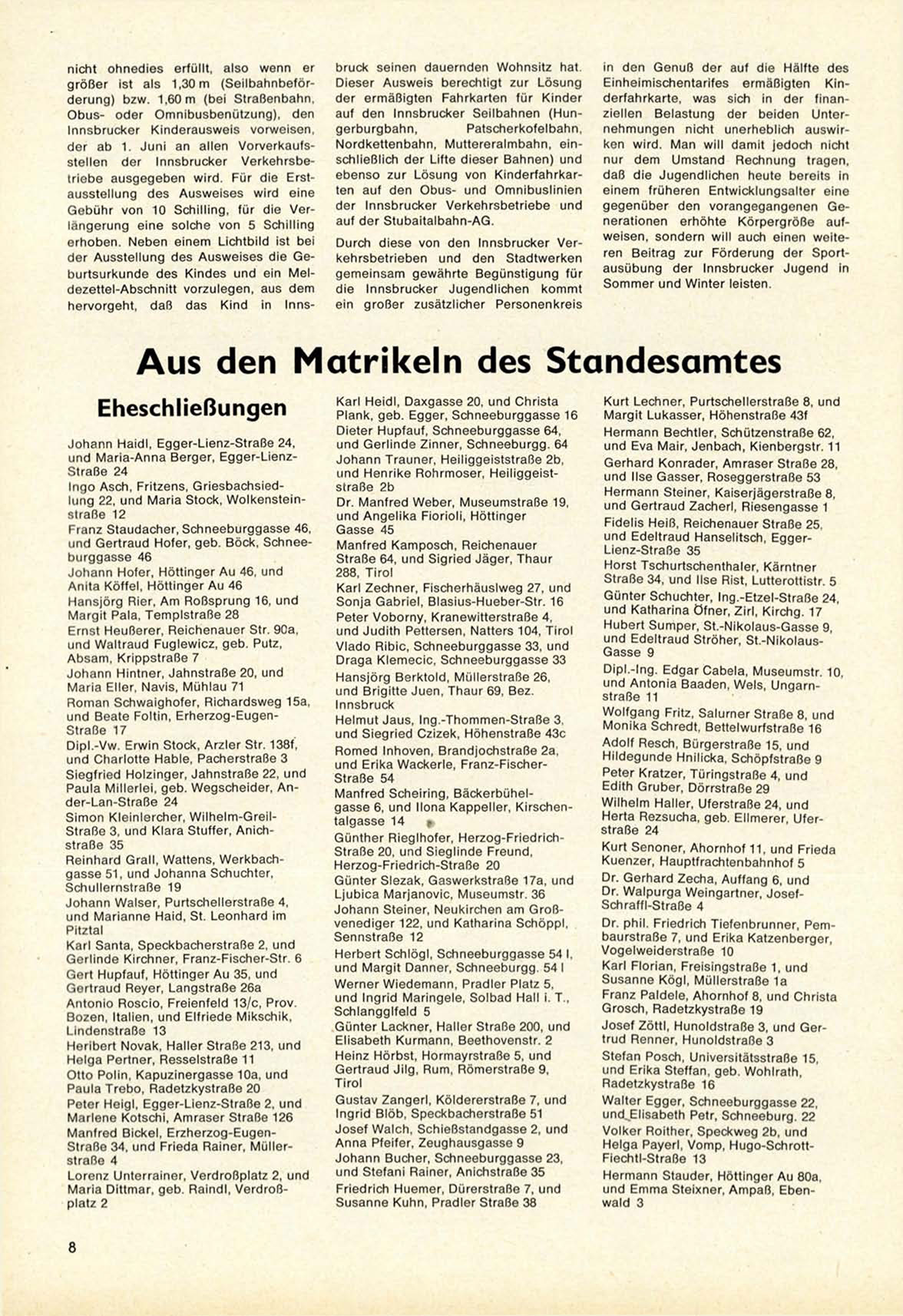 der ab 1. J u n i an allen V o r v e r k a u f s s t e l l e n der Innsbrucker V e r k e h r s b e triebe a u s g e g e b e n wird. Für die Ersta u s s t e l l u n g d e s A u s w e i s e s wird eine