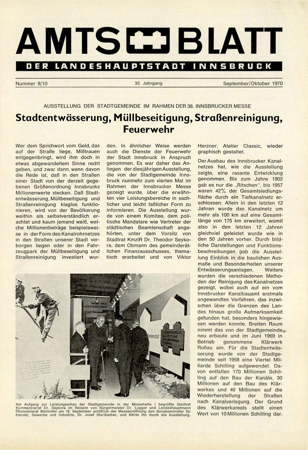 Der A u s b a u des Innsbrucker K a n a l netzes hat, wie die A u s s t e l l u n g