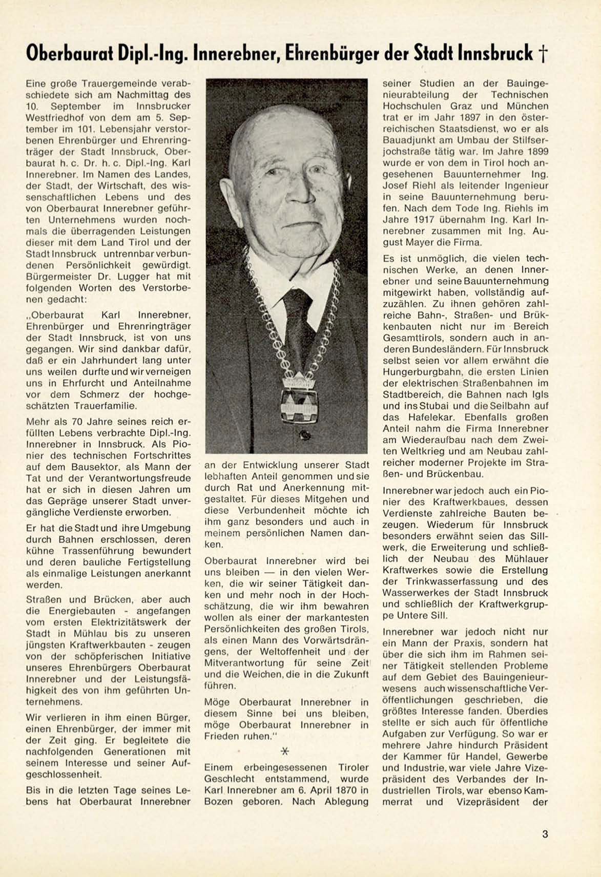 von O b e r b a u r a t Innerebner geführten U n t e r n e h m e n s w u r d e n n o c h mals die überragenden L e i s t u n g e n