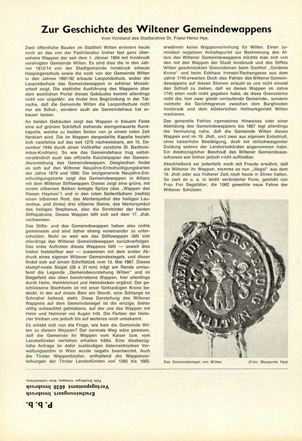 die V e r m u t u n g nahe, daß d i e G e m e i n d e Wilten d i e s e s