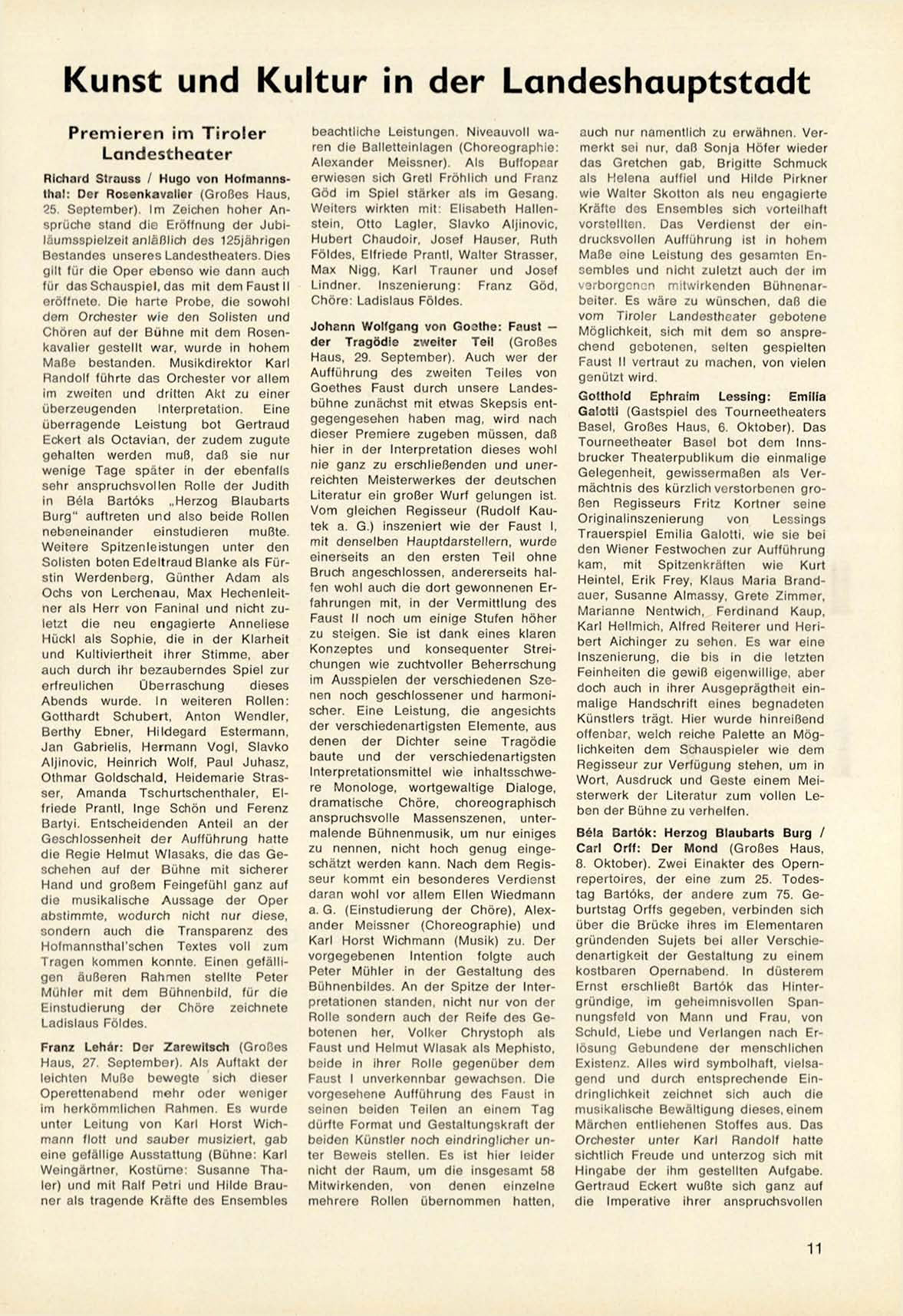 8. Oktober). Z w e i E i n a k t e r d e s O p e r n repertoires, der eine z u m 25. T o d e s tag Bartóks, der a n d e r e z u m 75. G e burtstag Orffs g e g e b e n , v e r b i n d e n sich