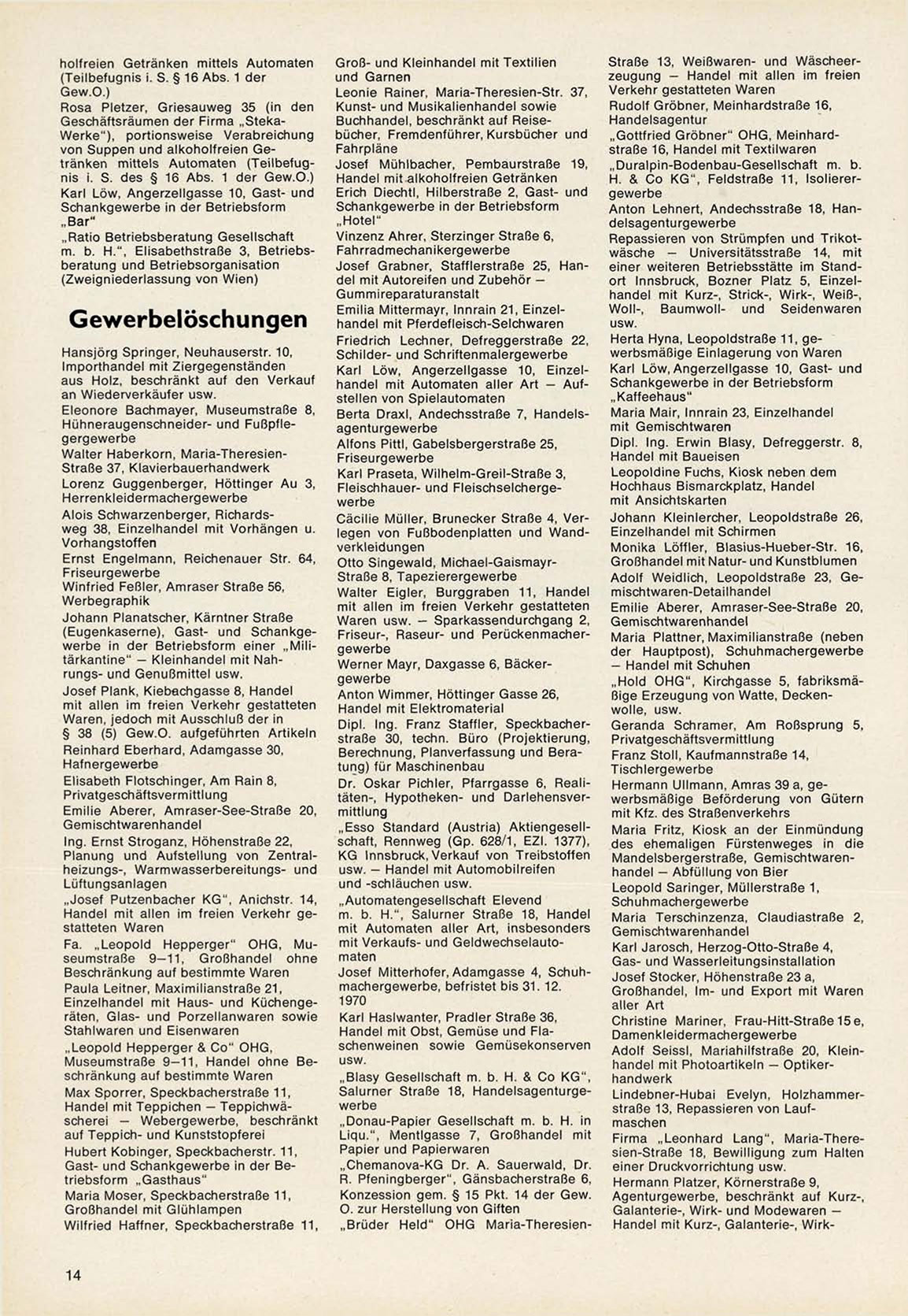 J o s e f Mitterhofer, A d a m g a s s e 4, S c h u h m a c h e r g e w e r b e , befristet bis 31. 12.
