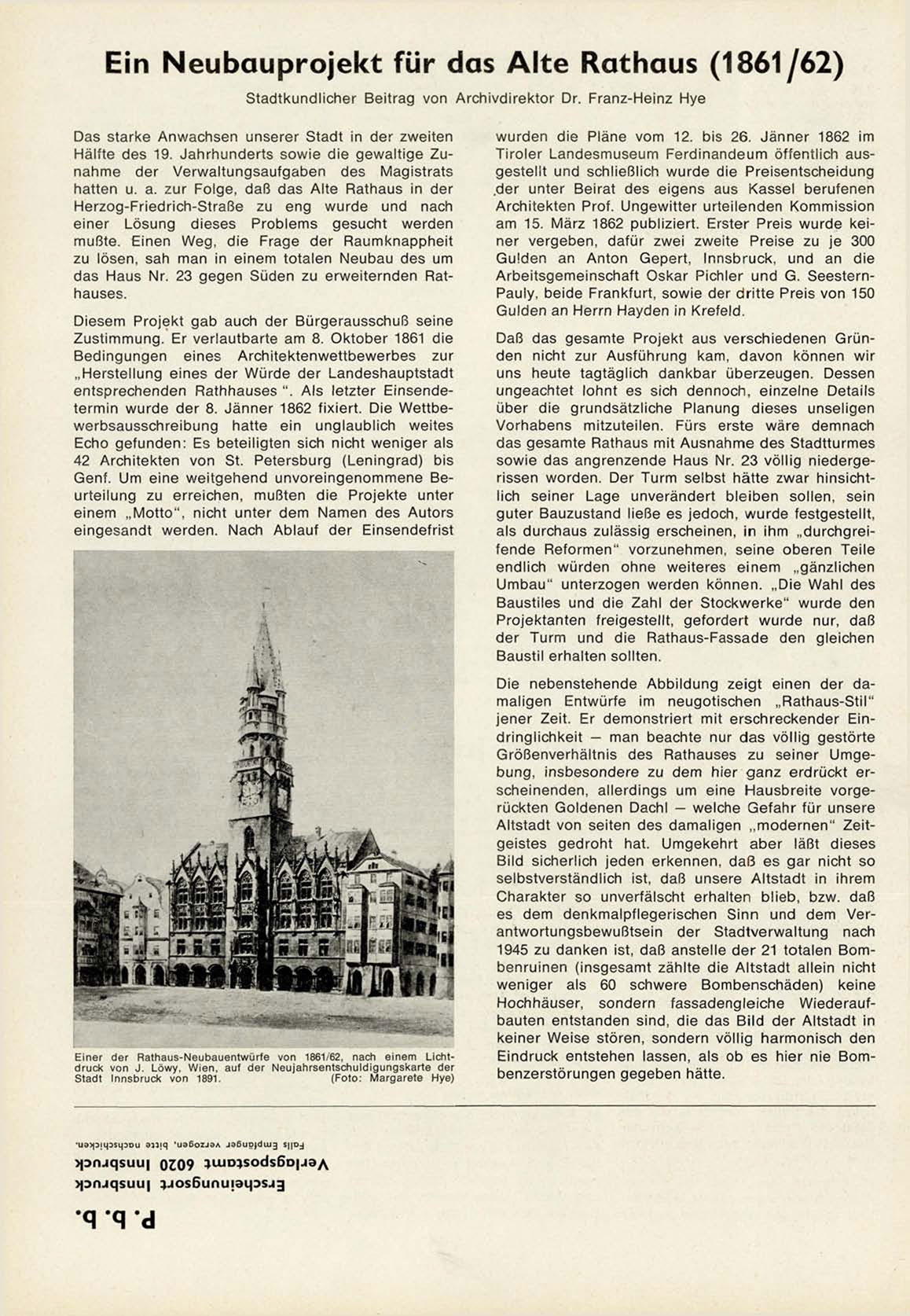 Stadtkundlicher Beitrag von Archivdirektor Dr. Franz-Heinz Hye