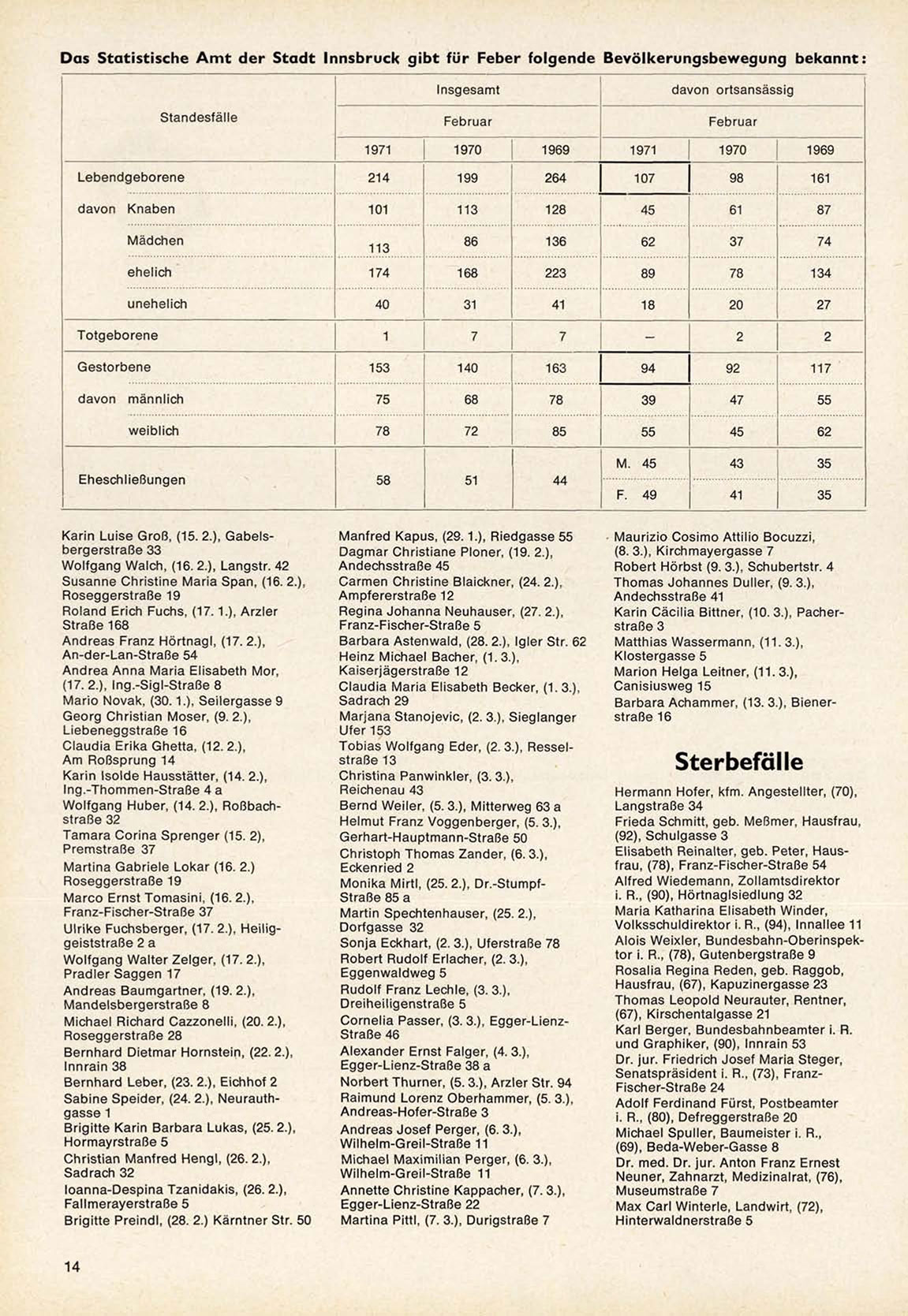 Das Statistische A m t der Stadt Innsbruck gibt für Feber folgende Bevölkerungsbewegung