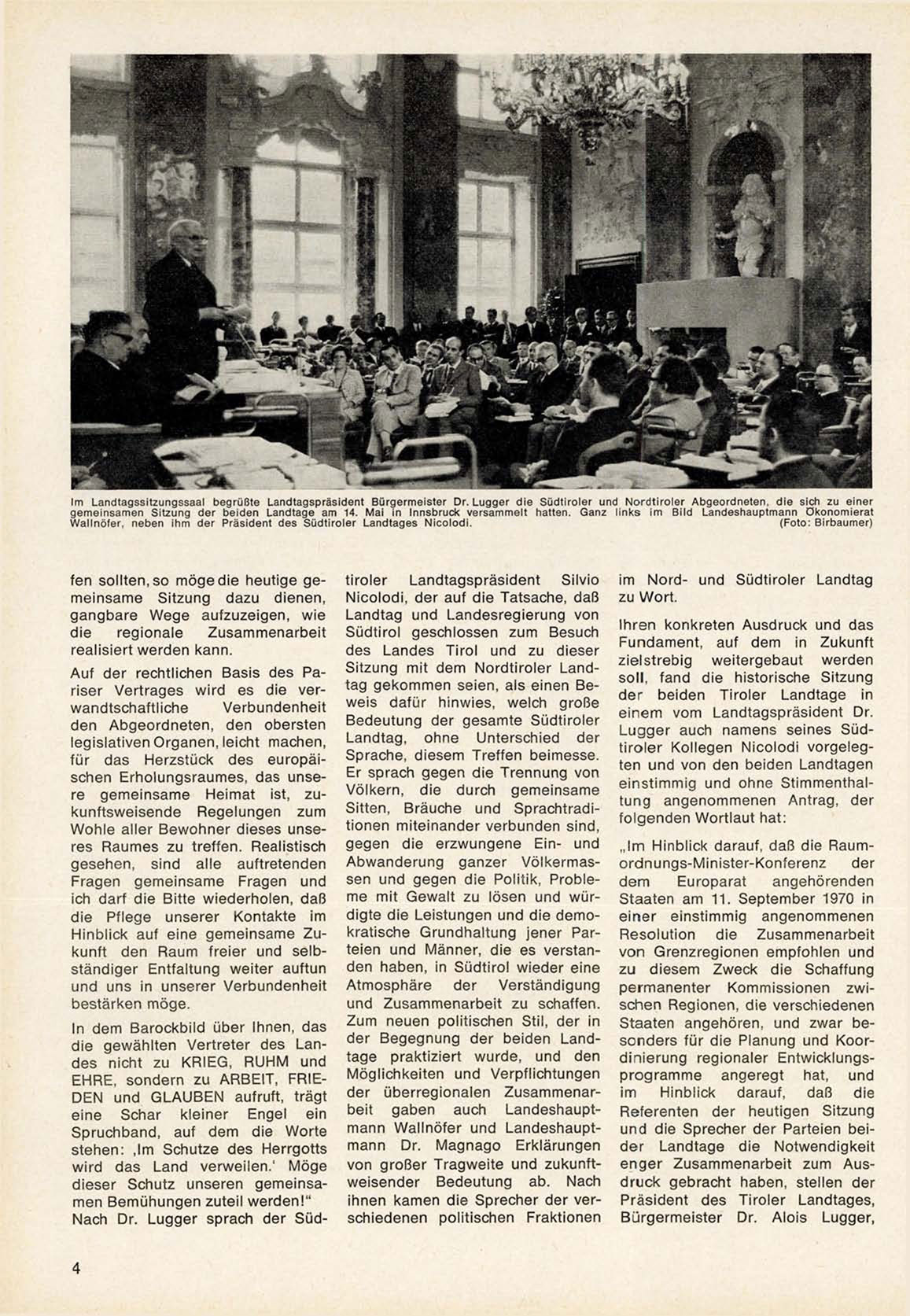 der überregionalen Zusammenarbeit gaben auch Landeshauptmann Wallnöfer und Landeshauptmann Dr. Magnago Erklärungen