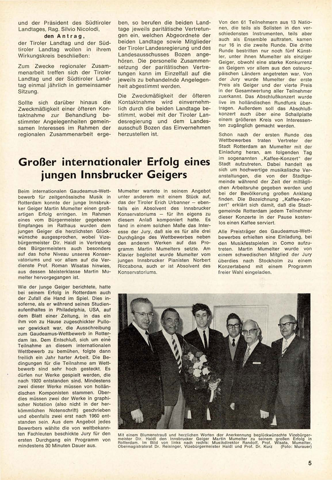 Mit einem Blumenstrauß und herzlichen Worten d e r A n e r k e n n u n g beglückwünschte Vizebürgermeister Dir. H a i d l den Innsbrucker G e i g e r M a r t i n M u m e l t e r zu s e i n e m großen Erfolg in
