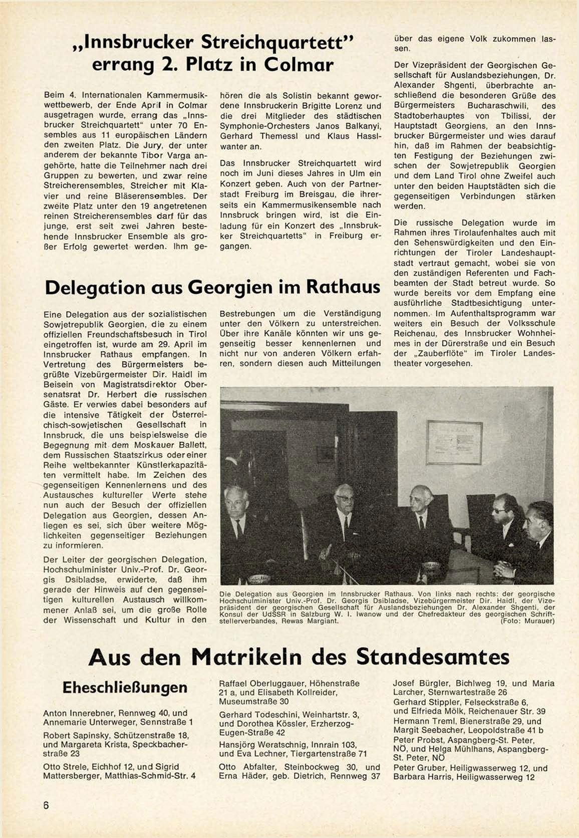Die D e l e g a t i o n aus G e o r g i e n im Innsbrucker Rathaus. V o n links nach rechts: der g e o r g i s c h e