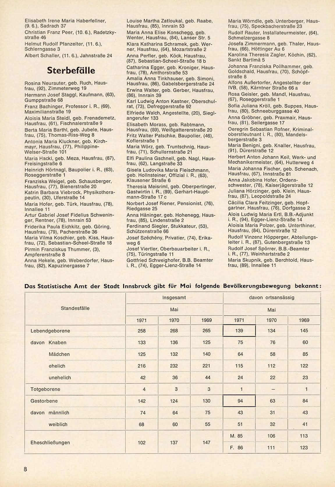 Das Statistische A m t der Stadt Innsbruck gibt für Mai folgende Bevölkerungsbewegung