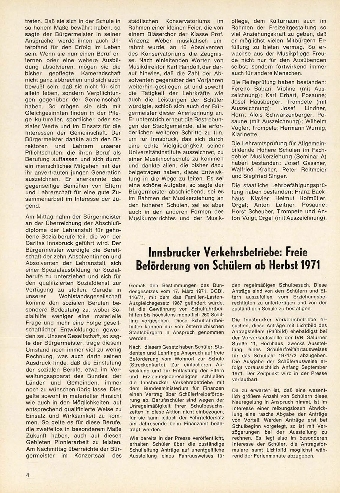 Beförderung von Schülern ob Herbst 1971