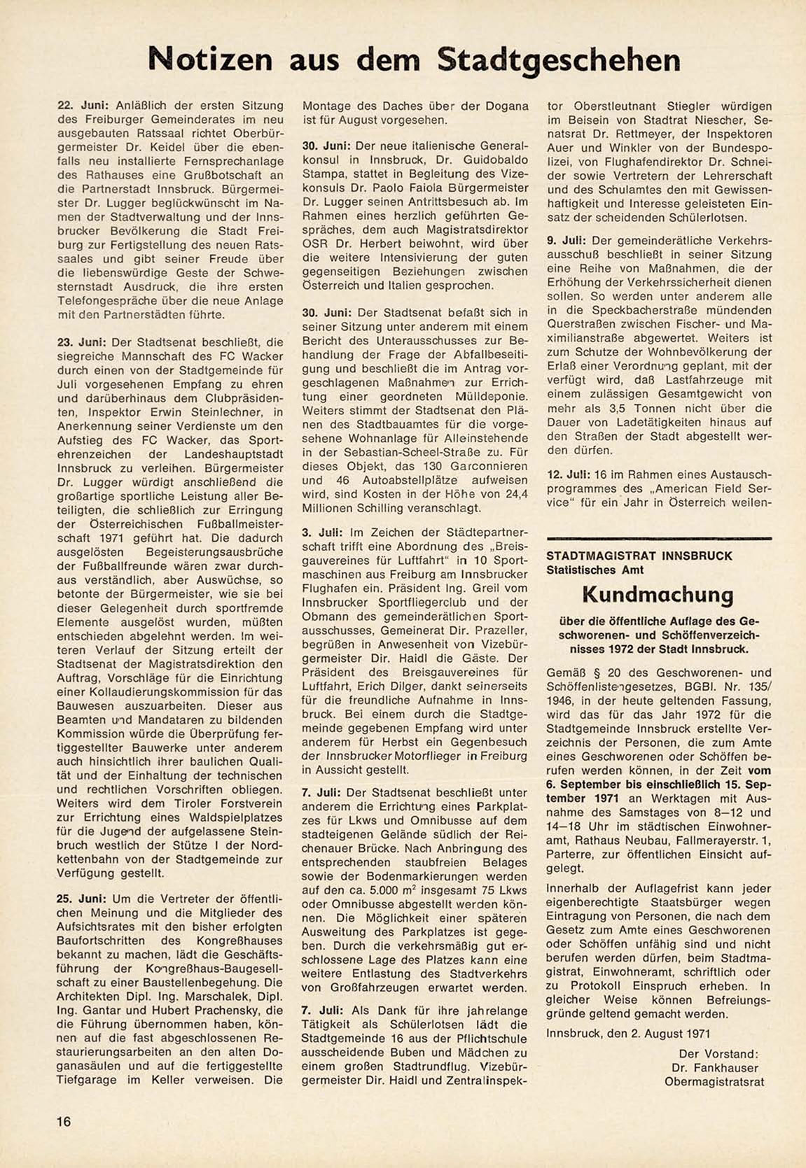 über die öffentliche Auflage des Geschworenen- und Schöffenverzeichnisses 1972 der Stadt Innsbruck.