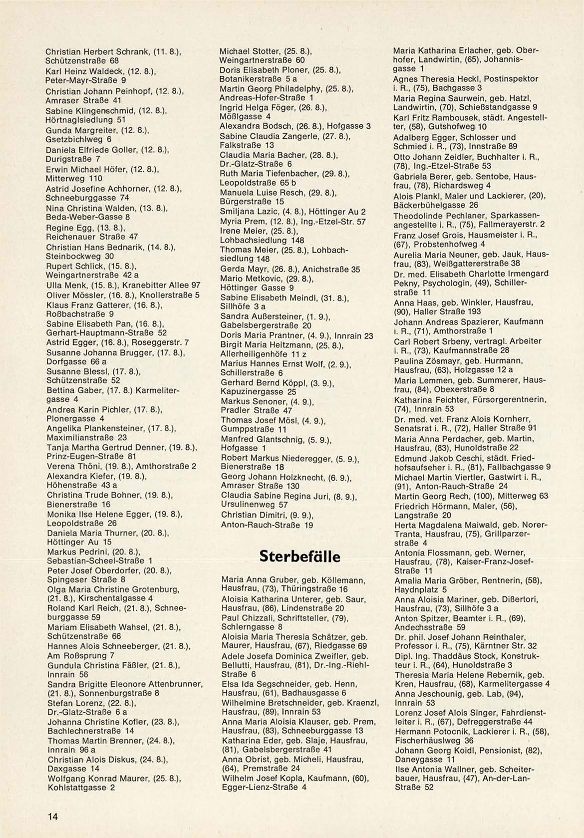 Theodolinde Pechlaner, S p a r k a s s e n angestellte i. R., (75), Fallmerayerstr. 2