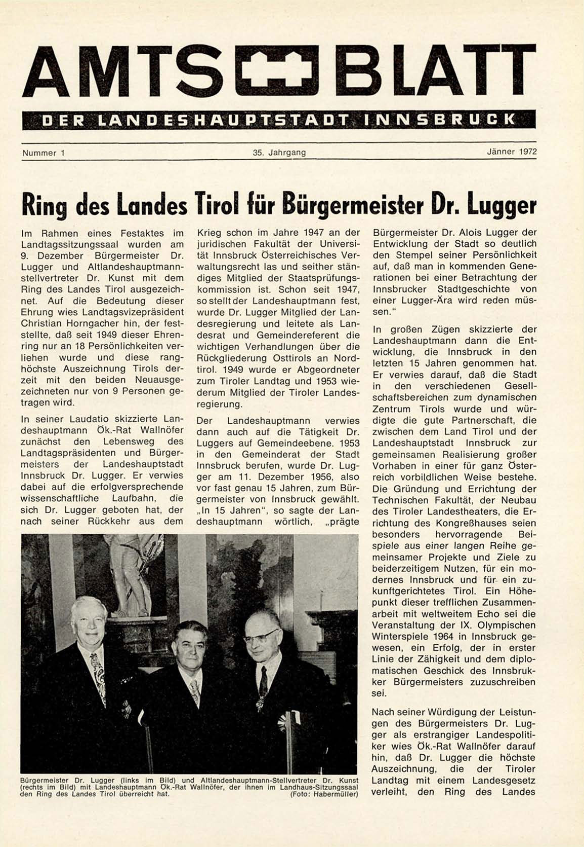 Innsbruck berufen, wurde Dr. Lugger am 11. Dezember 1956, also