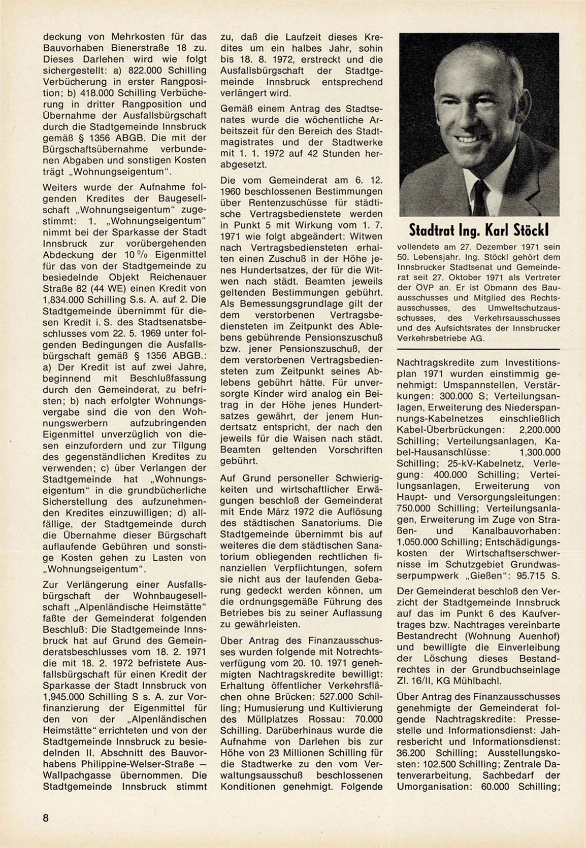 Beschluß: Die Stadtgemeinde Innsbruck hat auf Grund des Gemeinderatsbeschlusses vom 18. 2. 1971