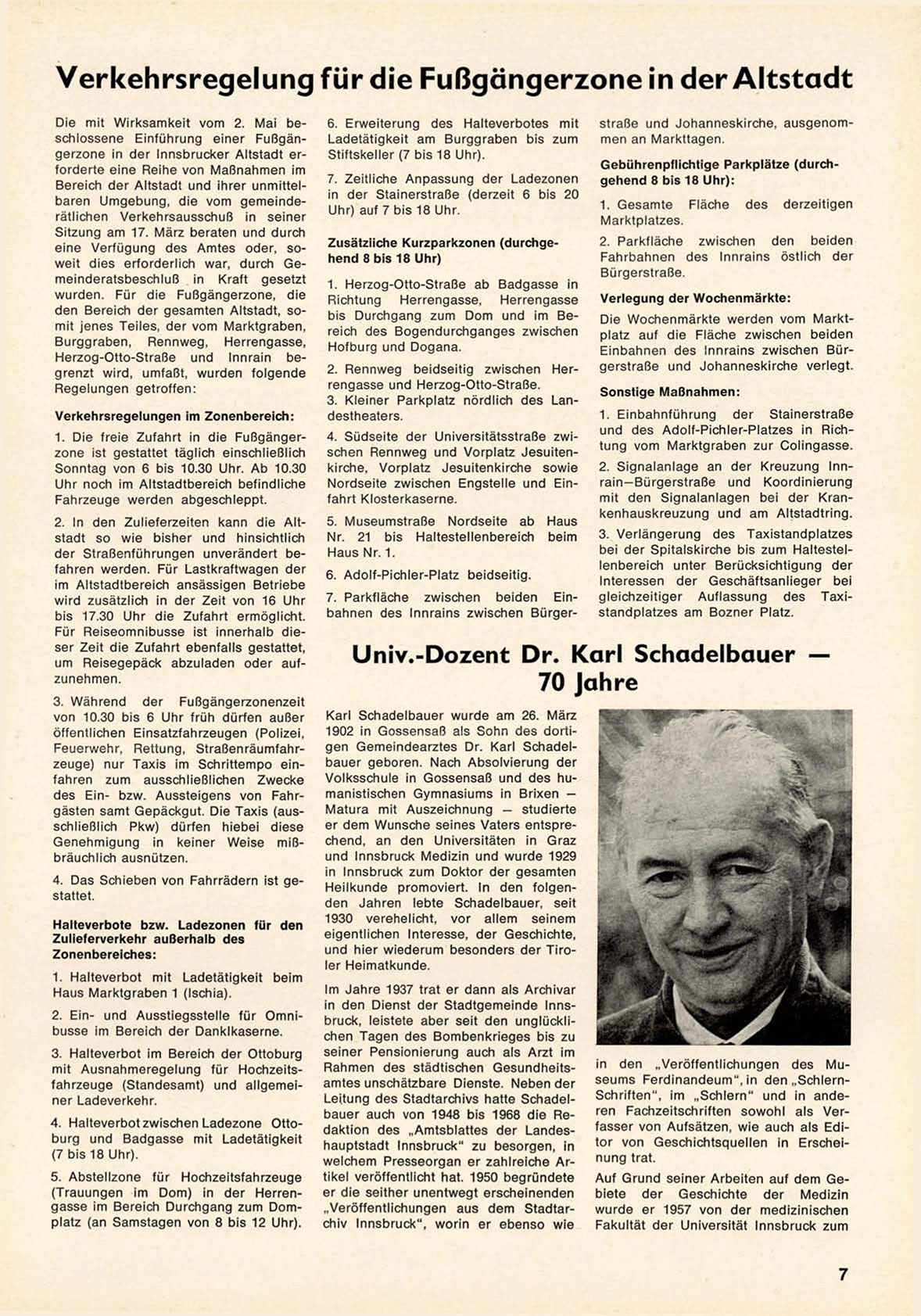 Leitung des Stadtarchivs hatte Schadelbauer auch von 1948 bis 1968 die Redaktion des „Amtsblattes der Landeshauptstadt Innsbruck" zu besorgen, in