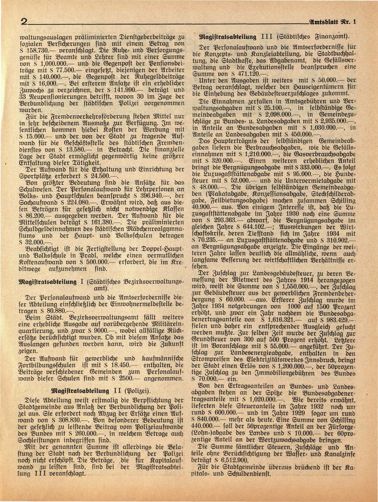 Die Einnahmen zerfallen in Amtsgebühren und Verwaltungsabgaben mit 8 25.100.—, in selbständige Gemeindeabgaben mit 8 2,098.000.—, in Gemeindezuschläge zu Bundes- u. Landesabgaben mit 8 2,935.000.—,