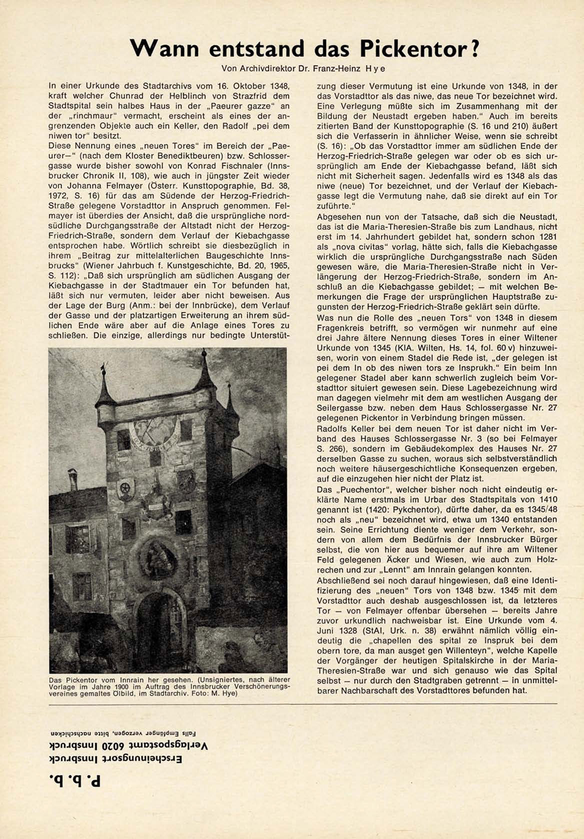 genannt ist (1420: Pykchentor), dürfte daher, d a e s 1345/48