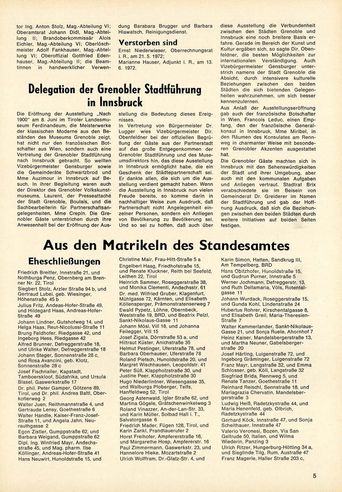 Aus den Matrikeln des Standesamtes
