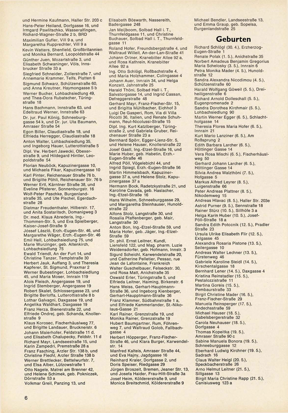 H e l g a K a r i n H u b e r (10. 5.), J o s e f Pöll-Straße 18 a