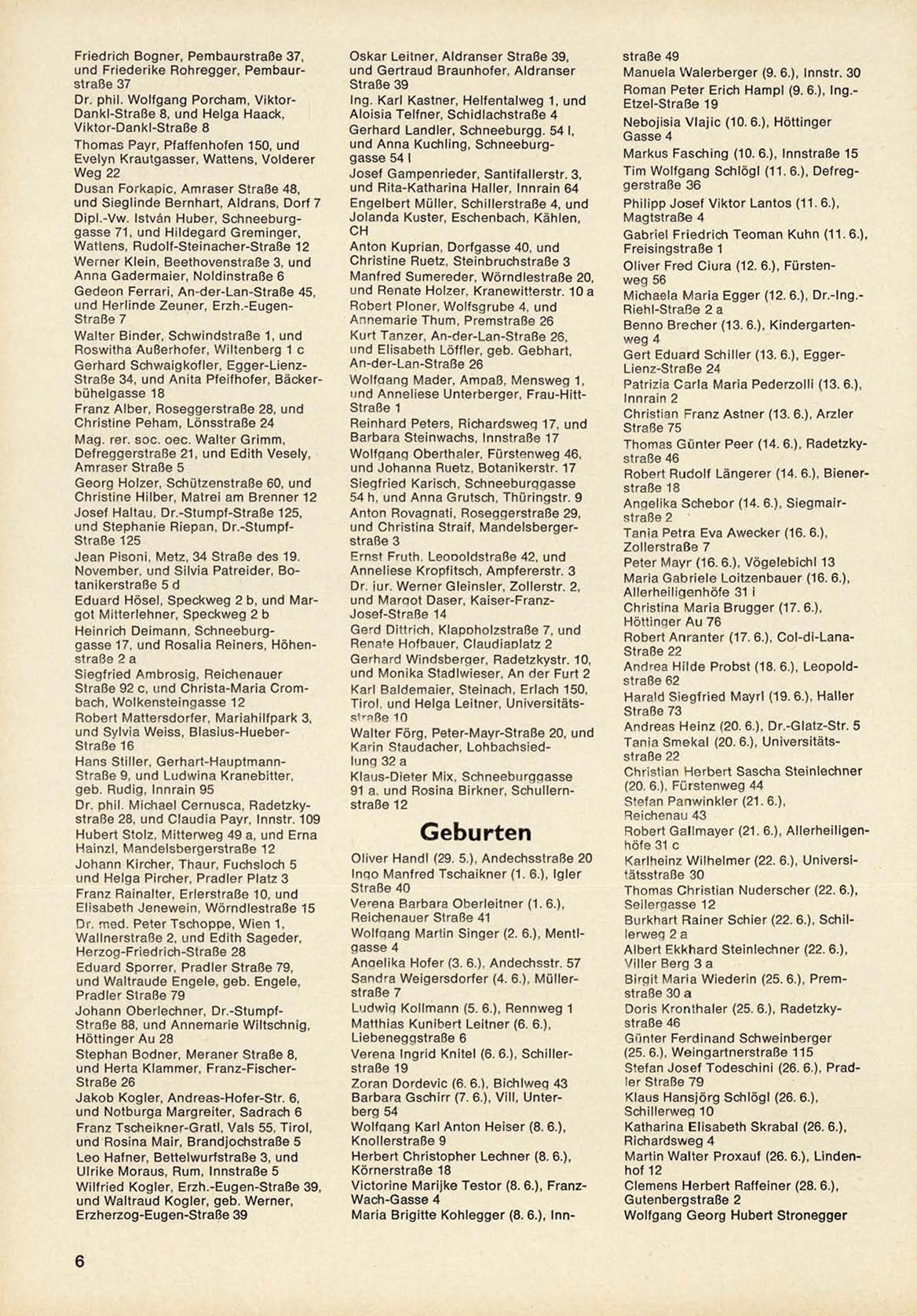 Gerhard Schwaigkofler, Egger-LienzStraße 34, und A n i t a Pfeifhofer, Bäckerb ü h e l g a s s e 18