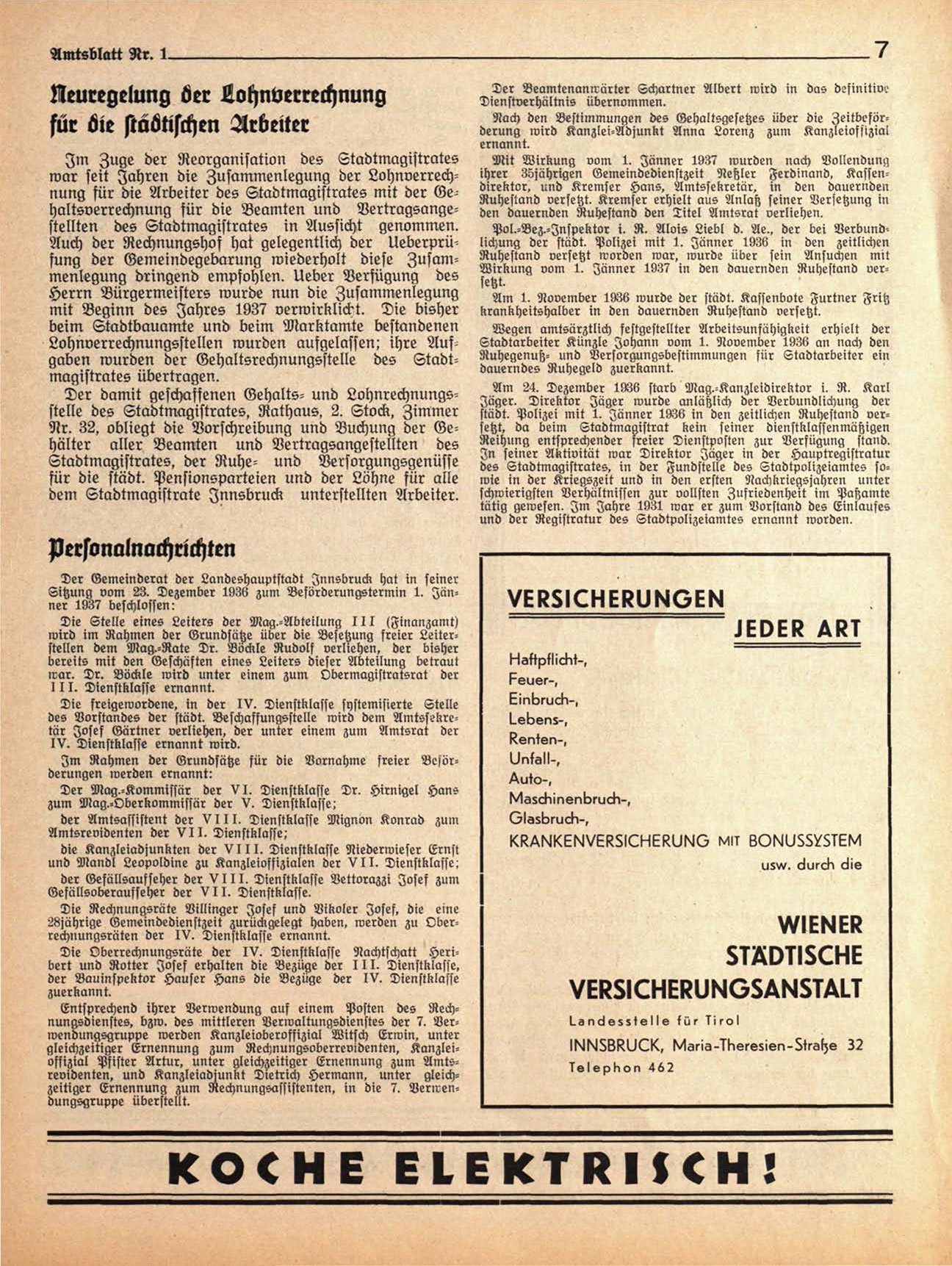 Mit Wirkung vom 1. Jänner 1937 wurden nach Vollendung