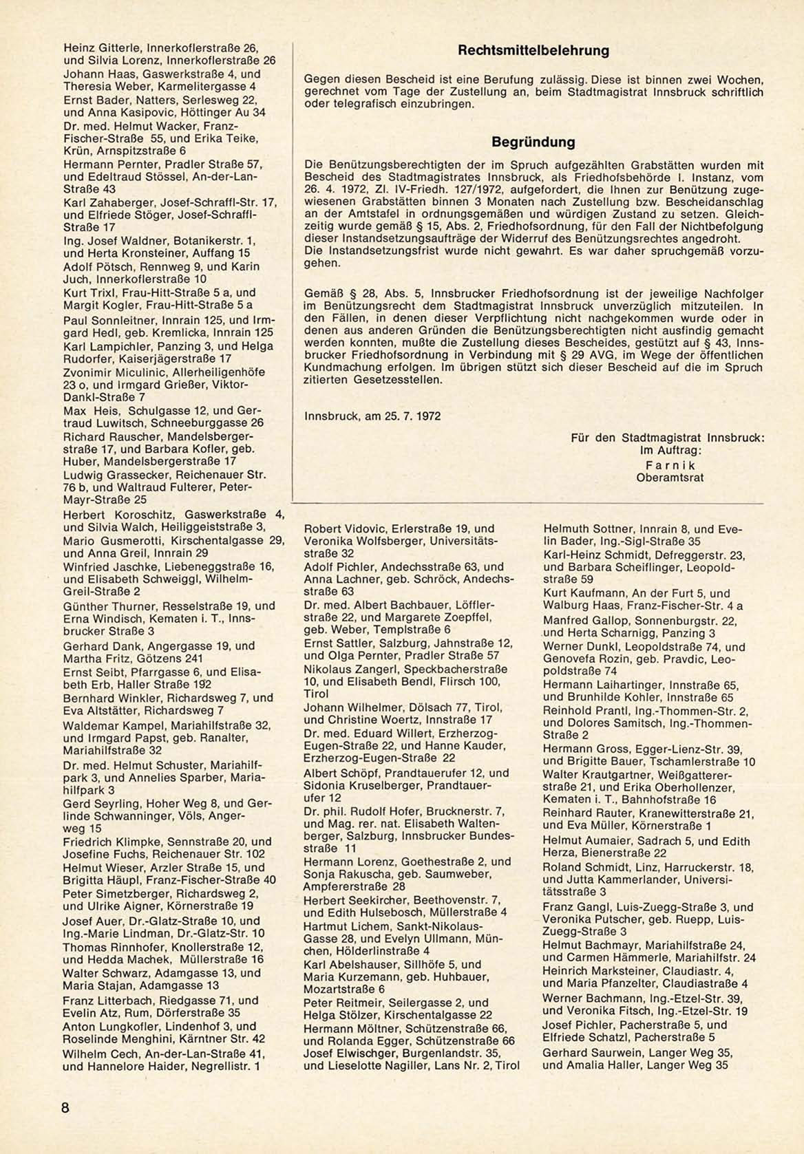 B e s c h e i d d e s S t a d t m a g i s t r a t e s Innsbruck, als F r i e d h o f s b e h ö r d e I. Instanz, v o m