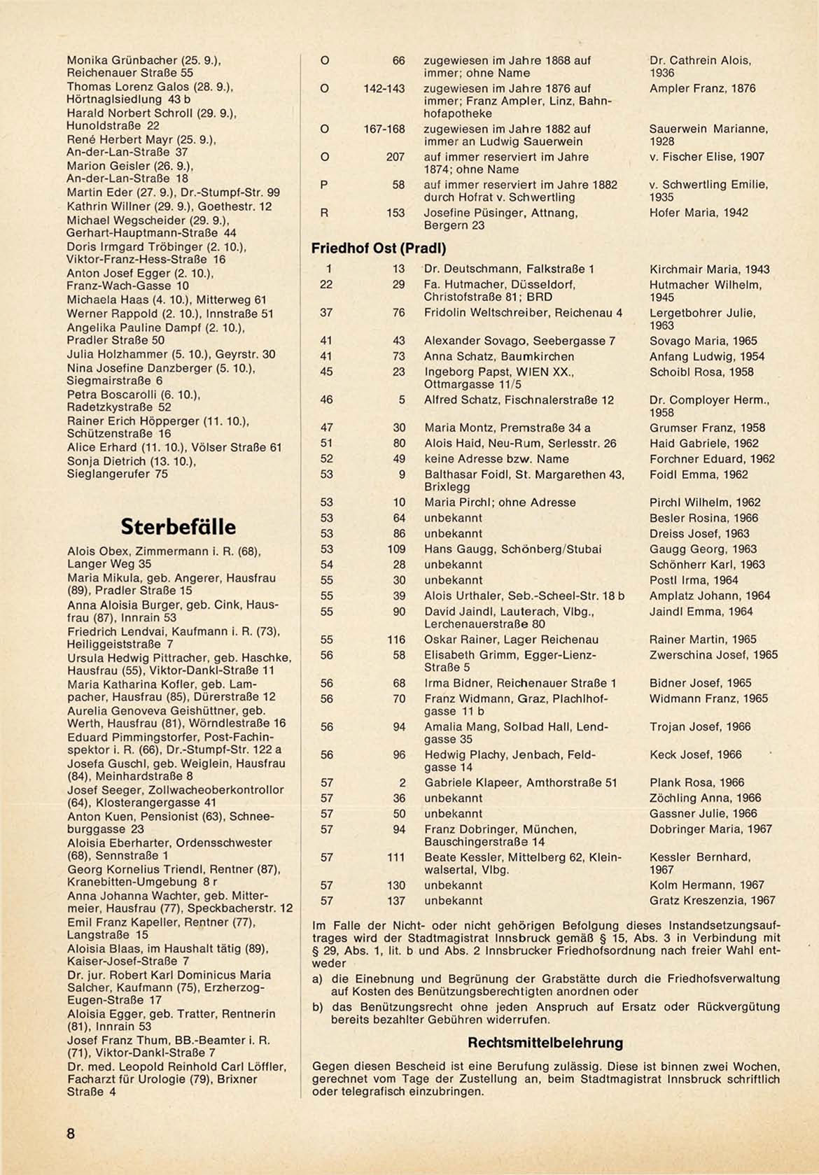 § 29, A b s . 1, lit. b und A b s . 2 I n n s b r u c k e r F r i e d h o f s o r d n u n g nach freier W a h l entweder