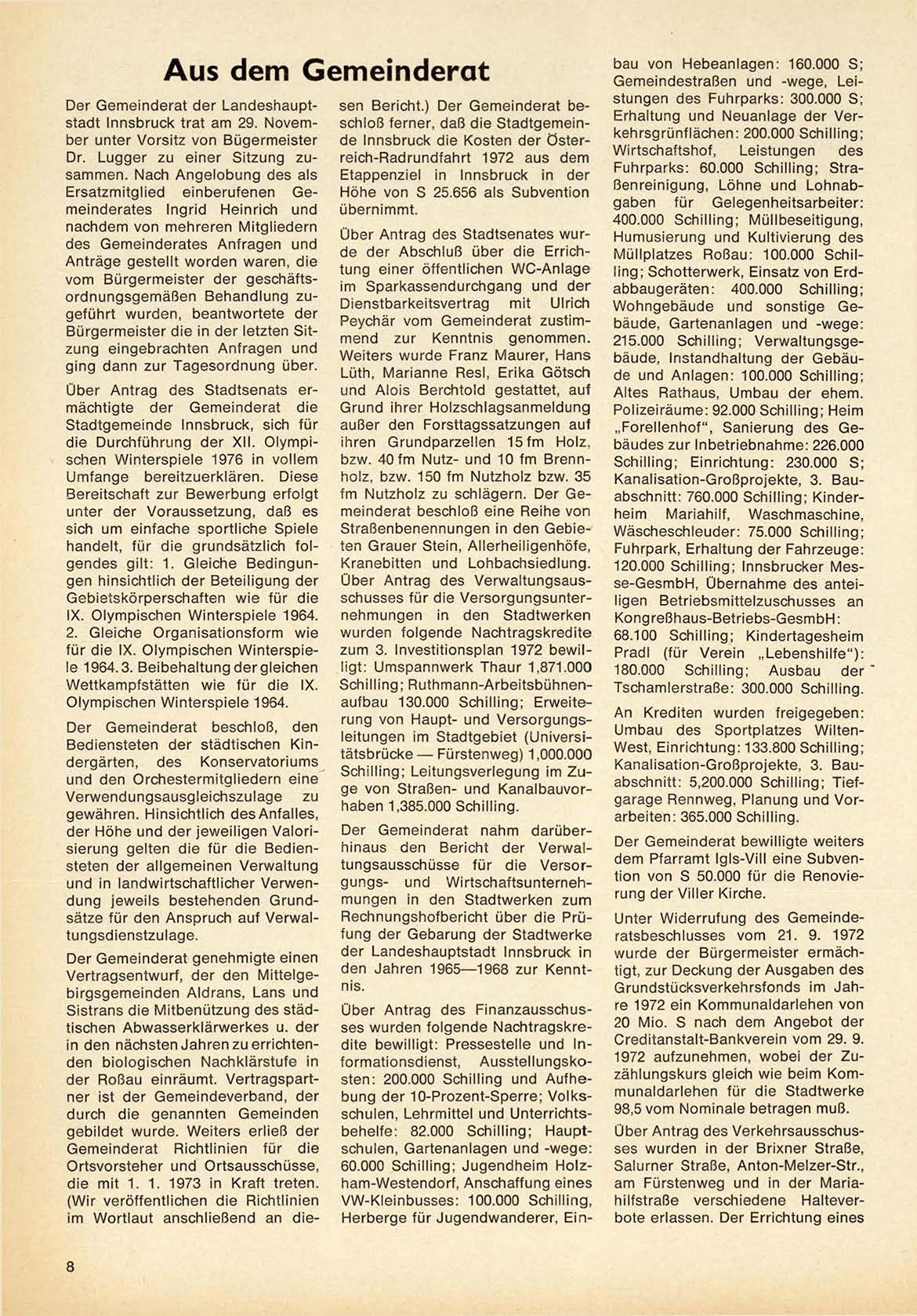 sen Bericht.) Der G e m e i n d e r a t beschloß ferner, daß die S t a d t g e m e i n de Innsbruck die K o s t e n der Österreich-Radrundfahrt 1972 aus dem