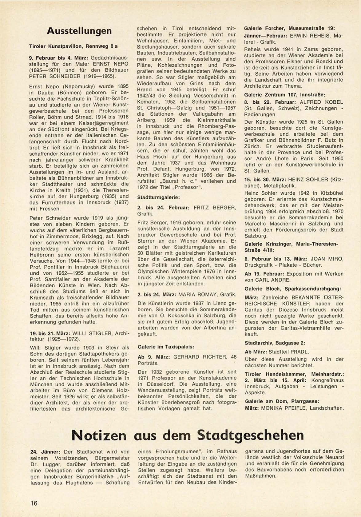A u s s t e l l u n g e n im In- und A u s l a n d , arbeitete als B ü h n e n b i l d n e r am Innsbrukker S t a d t t h e a t e r und schmückte die