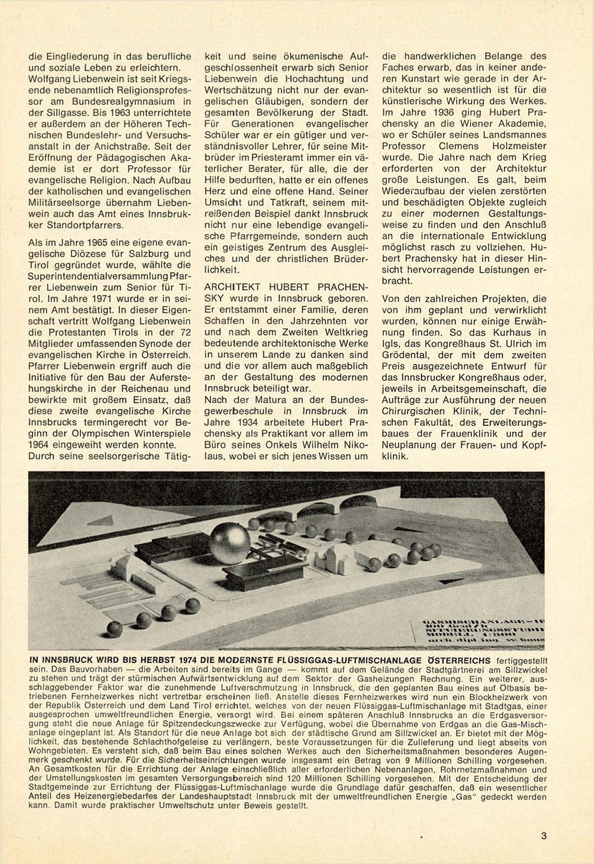 IN INNSBRUCK WIRD BIS HERBST 1974 DIE M O D E R N S T E FLÜSSIGGAS-LUFTMISCHANLAGE