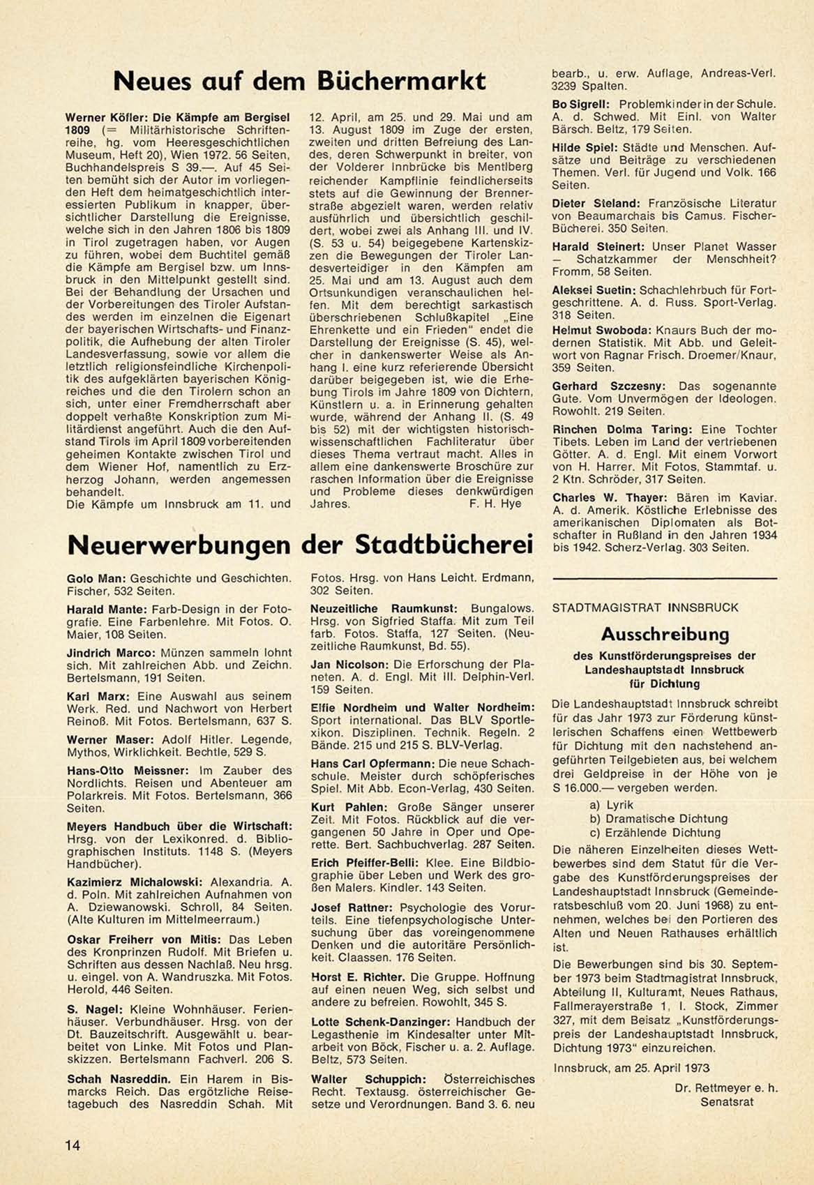 Die B e w e r b u n g e n s i n d bis 30. S e p t e m b e r 1973 beim S t a d t m a g istrat Innsbruck,