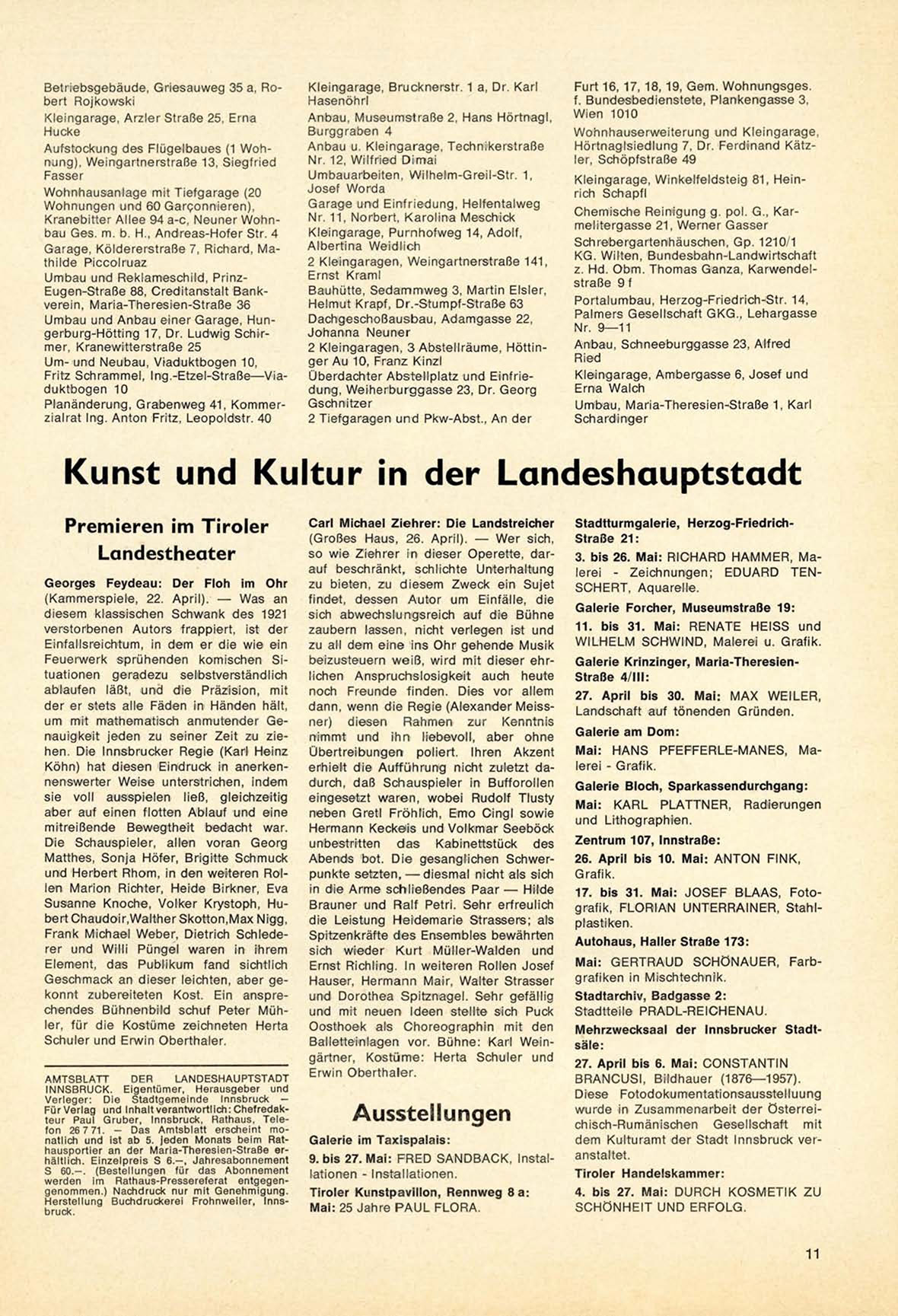 Für Verlag und Inhalt verantwortlich: Chefredakteur Paul G r u b e r , Innsbruck, Rathaus, T e l e fon 26 7 71. — Das Amtsblatt erscheint monatlich und ist ab 5. jeden Monats beim Rathausportier an der Maria-Theresien-Straße erhältlich. E i n z e l p r e i s S 6 . - , J a h r e s a b o n n e m e n t