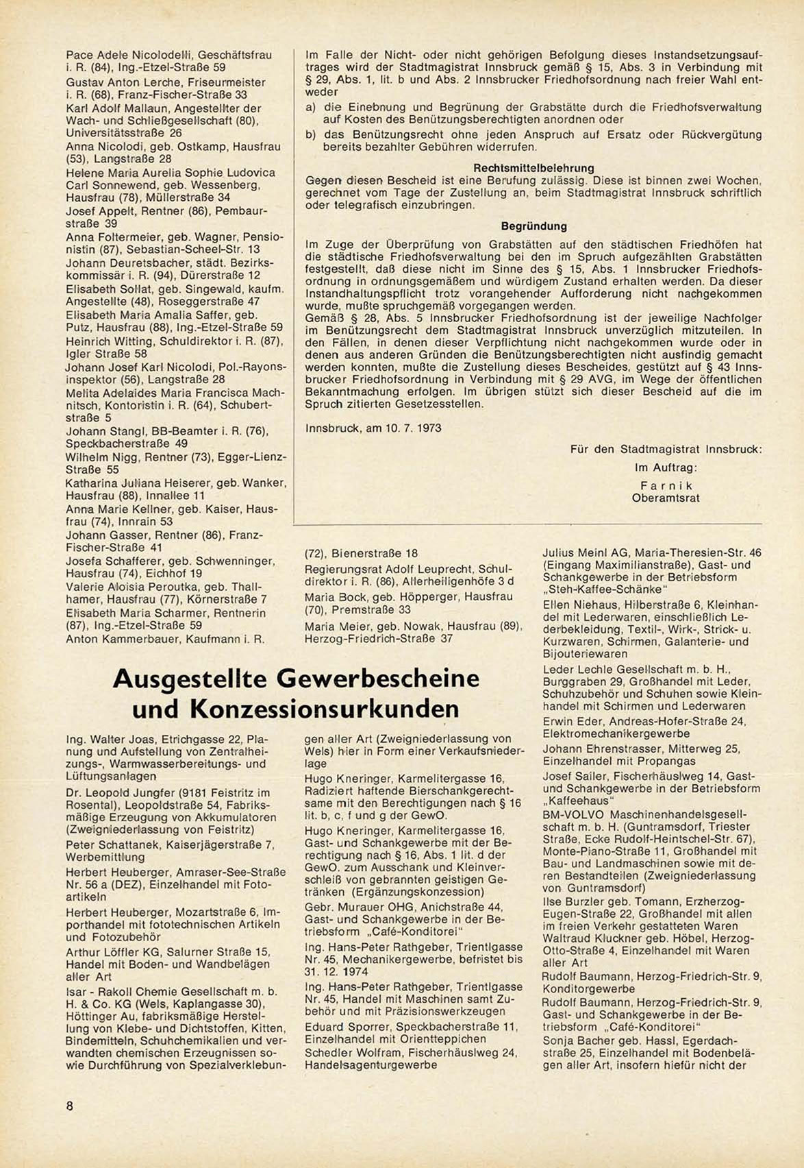 w e r d e n konnten, mußte die Z u s t e l l u n g d i e s e s B e s c h e i d e s , gestützt auf § 43 Innsb r u c k e r F r i e d h o f s o r d n u n g in V e r b i n d u n g mit § 29 A V G , im W e g e der öffentlichen