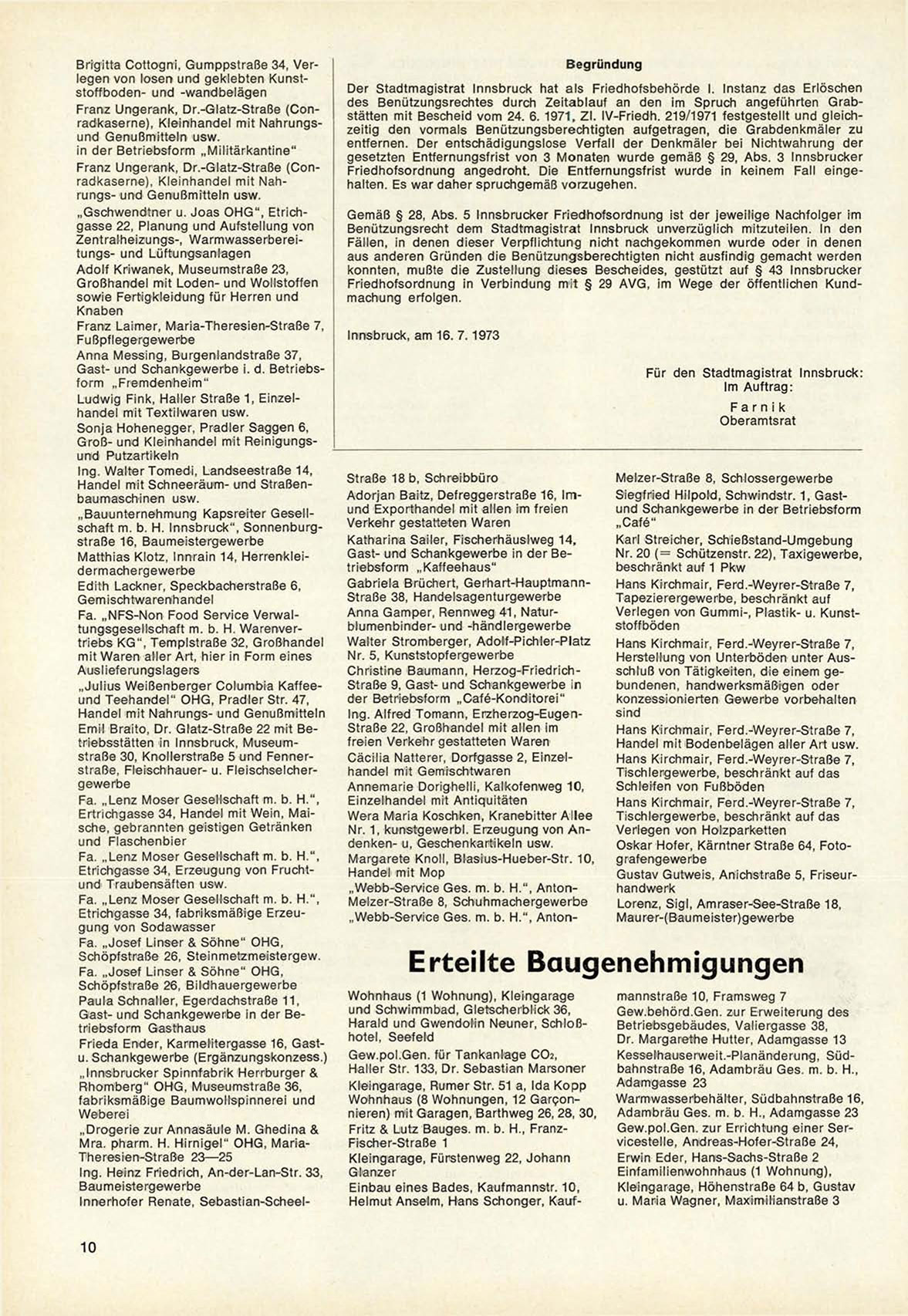 Innsbruck, am 16. 7 . 1 9 7 3