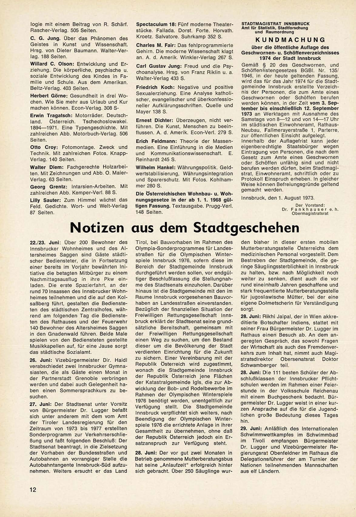 wird d a s f ü r das J a h r 1974 für die Stadtg e m e i n d e Innsbruck erstellte V e r z e i c h nis der P e r s o n e n , die z u m A m t e eines