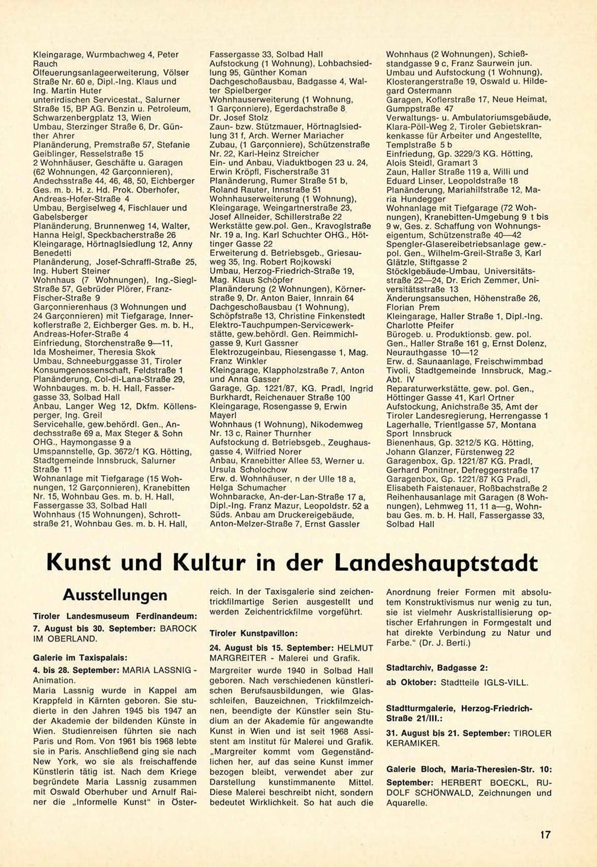 Margreiter wurde 1940 in S o l b a d Hall