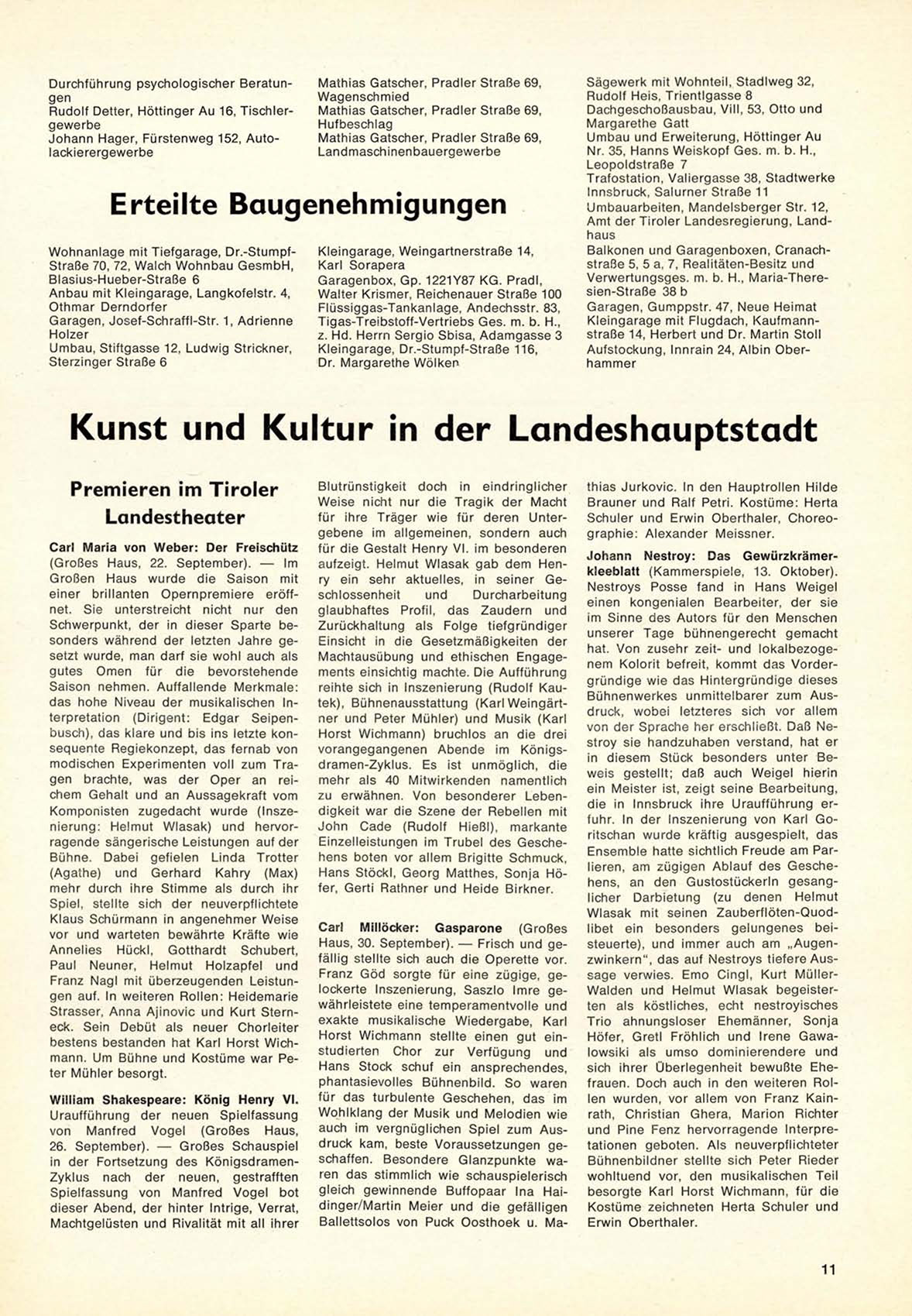 die in Innsbruck ihre U r a u f f ü h r u n g erfuhr. In der Inszenierung v o n Karl G o ritschan w u r d e kräftig a u s g e s p i e l t , d a s