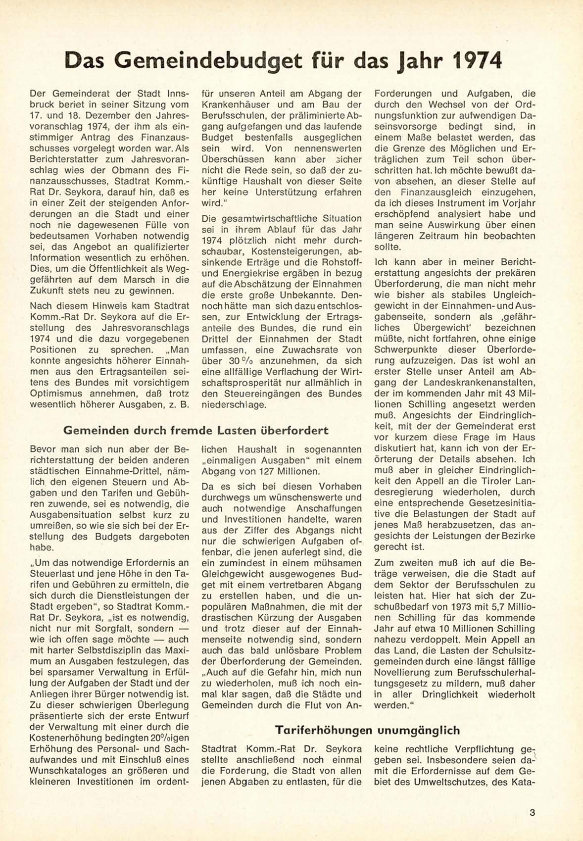 Der G e m e i n d e r a t d e r Stadt Innsbruck beriet in s e i n e r S i t z u n g vom