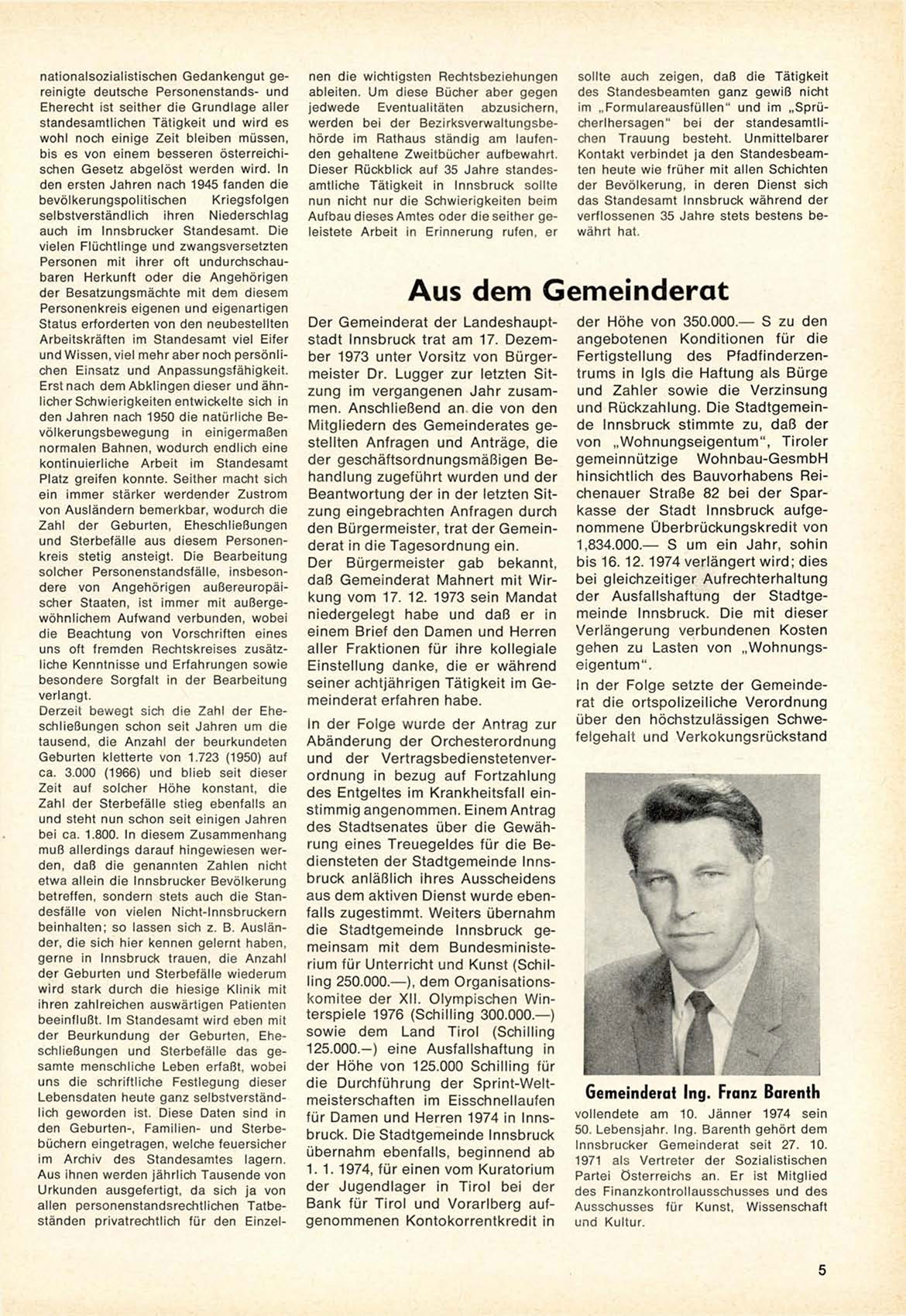 für D a m e n und H e r r e n 1974 in Innsbruck. Die S t a d t g e m e i n d e Innsbruck