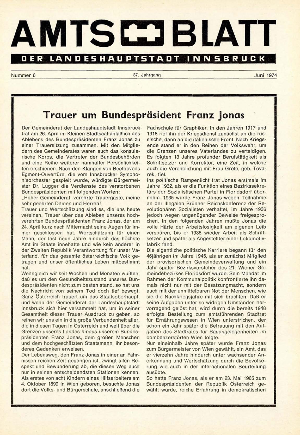 vereinen. T r a u e r über d a s A b l e b e n unseres hochverehrten B u n d e s p r ä s i d e n t e n F r a n z J o n a s , der am